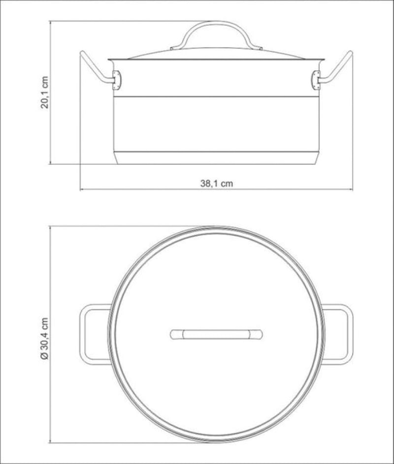 Caçarola Tramontina Professional Funda Aço Inox Fundo Triplo Tampa Plana Detalhe Satinado 28cm 8,4L Tramontina - Características Gerais do Produto: Garantia: • 1 Ano