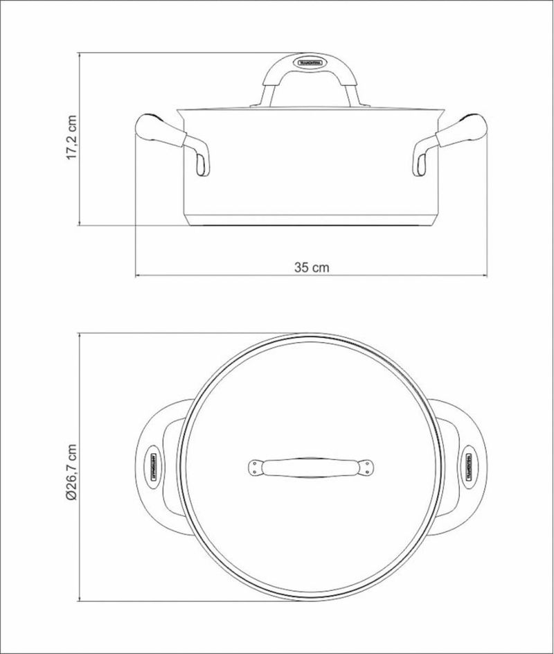 Caçarola Tramontina Rasa Duo Silicone Aço Inox Fundo Triplo Tampa Alças Silicone 24cm 4,7L Tramontina - Nada como poder sentir aquele cheirinho de comida caseira e saber que ela está sendo feita com muito amor. A Caçarola Tramontina Rasa em Aço Inox Fundo Triplo com Tampa e Alças em Silicone 24 cm de diâmetro 4,7 L lhe ajuda a preparar os pratos mais saborosos e encantadores. Totalmente produzida em aço inox, fazendo com que nenhum resíduo seja solto nos alimentos, mantendo-os saudáveis. Além disso, você pode contar com o fundo triplo (aço inox + alumínio + aço inox), que distribui o calor uniformemente, fazendo com que o preparo seja ainda mais rápido mas sem afetar o cozimento dos alimentos. Ela também conta com as alças de silicone antitérmico, deixa o manuseio ainda mais confortável no dia a dia. Acompanha tampa com escape na lateral para saída do vapor, evitando assim o efeito do vácuo, e com encaixe perfeito. A Caçarola da Tramontina será a sua panela favorita para todas as suas receitas. Mais saudável: por ser feita de aço inoxidável, a caçarola Tramontina não libera nenhum tipo de resíduo nas suas receitas. Fácil de usar: uma caçarola prática para todas as suas receitas e que faz bonito em qualquer tipo de fogão: gás, elétrico, vitrocerâmico e indução. Ainda possui tampa com saída de vapor e encaixe perfeito. As alças, cabos e pegadores tem revestimento em silicone antitérmico tornando a pega mais macia e confortável. Mais durável: o inox Tramontina é uma matéria-prima nobre, resistente e que vai fazer bonito por muito mais tempo na cozinha.Economiza tempo e energia: o segredo está no fundo triplo (aço inox + alumínio + aço inox), que distribui o calor uniformemente, proporcionando um cozimento mais rápido. Por isso, você pode manter o fogo baixo durante todo o preparo e, assim, poupar energia.Fácil de limpar: deixar sua caçarola brilhando é simples, você só precisa de água, sabão e uma esponja macia. Se preferir, é só colocar na máquina de lavar. Observações A capacidade volumétrica máxima para cozimento é de 3/4 da capacidade total da peça.Antes do uso, remova as eventuais etiquetas presentes no produto, e em seguida recomendamos lavar. Use uma fonte de calor sempre baixa, para evitar que o alimento grude no fundo da caçarola. O fundo triplo distribui uniformemente o calor, não sendo necessário o fogo alto. E, além disso, você economiza energia. Quando a caçarola for utilizada no fogão a gás, a chama não deve ultrapassar a base da caçarola. No caso de uso de chapa elétrica, a chapa deverá ter diâmetro igual ou inferior ao da caçarola. Não aqueça o alimento colocando uma caçarola ou qualquer utensílio do mesmo diâmetro um sobre o outro. Esse procedimento é perigoso, pois cria vácuo e impossibilita a retirada. Não deixe a caçarola vazia sobre uma fonte de calor. Deixe caçarolas quentes somente em superfícies resistentes ao calor. Sempre dissolva o sal em água fervendo ou com os alimentos, mexendo os ingredientes no início do cozimento. Alguns alimentos que possuem amido, como massa e arroz, poderão deixar manchas na parte interna da caçarola durante o cozimento. Para remover facilmente as manchas, passe um pano umedecido com suco de limão ou vinagre, ou use a pasta Tramontina para polir e remover manchas. Evite deixar alimento na caçarola por muito tempo; o sal também pode provocar manchas e corrosão. Para que a caçarola de aço inox fique sempre bonita e com brilho, recomendamos que seja lavada somente com detergente neutro e esponja. Além disso, nas partes foscas da caçarola pode-se utilizar o lado mais abrasivo da esponja com saponáceo líquido, para remover as manchas mais difíceis. Depois da lavagem, sempre que possível, enxágue a caçarola com água quente e seque-a imediatamente, para que ela mantenha o brilho original, pois o cloro e as substâncias contidas na água podem deixar manchas na caçarola. Nas caçarolas/tampas cujo sistema de fixação utiliza parafuso, com o tempo de uso, ele poderá afrouxar-se. Recomenda-se, por segurança, o reaperto. As alças, pegadores e cabos aquecem durante o cozimento. Aconselhamos o uso de luvas ou pano no manuseio. É necessário cuidado ao manusear o produto, principalmente com alimentos ou líquidos quentes. Para sua segurança, utilize somente até a capacidade máxima indicada no fundo do produto. Características Gerais EAN13 7891116066782 DUN14 17891116066789 NCM 7323.93.00 2,1150 kg. 2,3500 kg. Metragem 0,010300 m³. 307x 275x 122 mm. 350x 267x 172 mm. Diâmetro 24,0 cm. Capacidade 4,70 l. Espessura 0,7 mm. Características Gerais do Produto: Garantia: • 1 Ano