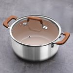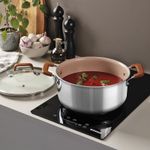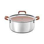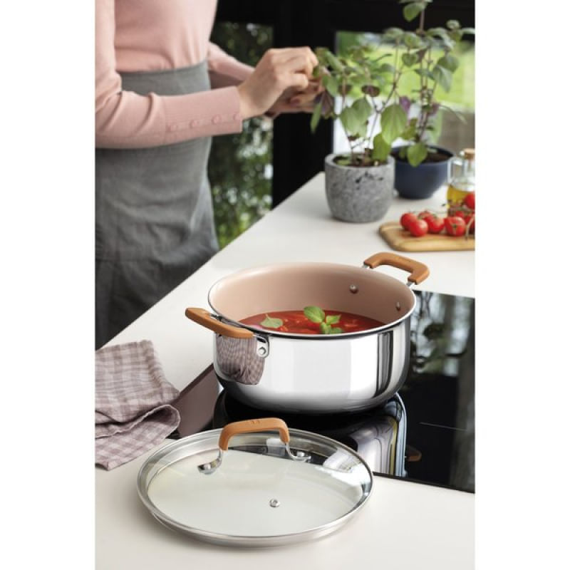 Caçarola Tramontina Romagna Aço Inox Alumínio Cerâmico Marfim 24 cm 5,24 L Tramontina - A caçarola Tramontina Romagna em aço inox e alumínio com revestimento interno cerâmico Marfim de 24 centímetros de diâmetro e 5,24 litros, combina robustez e praticidade, sendo ideal para o preparo de grandes receitas. Perfeita para ensopados, massas e carnes, ela é uma excelente escolha para quem adora receber a família ou amigos em casa. Seu revestimento interno cerâmico proporciona um cozimento uniforme e facilita a limpeza. A Tecnologia Biply Induction, que une aço inox e alumínio, torna a caçarola compatível com todos os tipos de fogões, incluindo indução, oferecendo cozimento rápido e uniforme, além de economia de energia e segurança na hora de cozinhar. As alças e pegadores metálicos com proteção de silicone proporcionam maior conforto e segurança durante o manuseio, enquanto o design sofisticado adiciona um toque de modernidade à sua cozinha. A caçarola perfeita para quem valoriza praticidade e qualidade no dia a dia, trazendo elegância para cada refeição! Características Gerais do Produto: Garantia: • 3 Meses