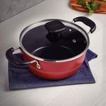 Desempenho superior e mais praticidade no dia a diaA Caçarola Tramontina Sicília de 24 cm, na elegante cor vermelha, é perfeita para quem busca funcionalidade e estilo na cozinha. Com capacidade de 4,3 litros, ela é fabricada em alumínio com revestimento interno e externo antiaderente Starflon Excellent, que proporciona cozimento rápido e uniforme, além de impedir que os alimentos grudem, tornando a limpeza muito mais prática.Conforto, segurança e estilo vibranteEquipada com alças em baquelite antitérmico, a caçarola garante um manuseio confortável e seguro, já que não aquece durante o uso. Além de resistente e durável, pode ser levada à máquina de lavar louças, facilitando sua rotina e poupando tempo. Seu design moderno e colorido é ideal para quem deseja adicionar um toque de personalidade à cozinha, tornando-se a escolha perfeita para uso diário.
