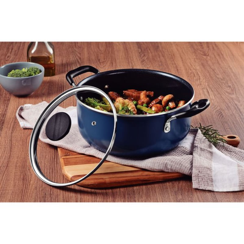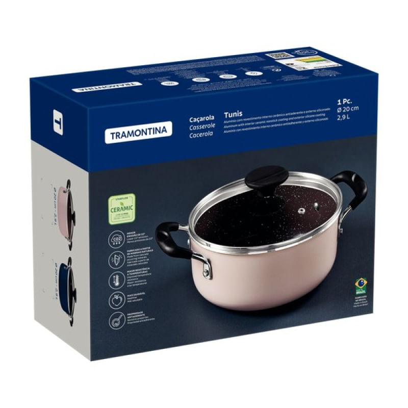 Caçarola Tramontina Tunis Alumínio Cerâmico e Externo Siliconado Azul Mediterrâneo 20 cm 2,9 L Tramontina - Através da caçarola Tramontina Tunis em alumínio com revestimento interno cerâmico e externo siliconado azul mediterrâneo 20 centímetros de diâmetro você eleva suas criações culinárias a um novo nível excepcional e garante para sua cozinha toda a funcionalidade que ela merece. Desenvolvida em alumínio com revestimento interno cerâmico e externo siliconado com fundo de indução, ela é ideal para preparar suas receitas favoritas de maneira rápida e uniforme. Seu cabo é metálico com proteção de silicone, que oferece maior conforto e segurança durante o manuseio, além de um toque moderno e elegante. A eficiência é uma marca desta caçarola! E com ela, você prepara suas receitas com maior praticidade e eficiência, seja ela qual for! Características Gerais do Produto: Garantia: • 3 Meses