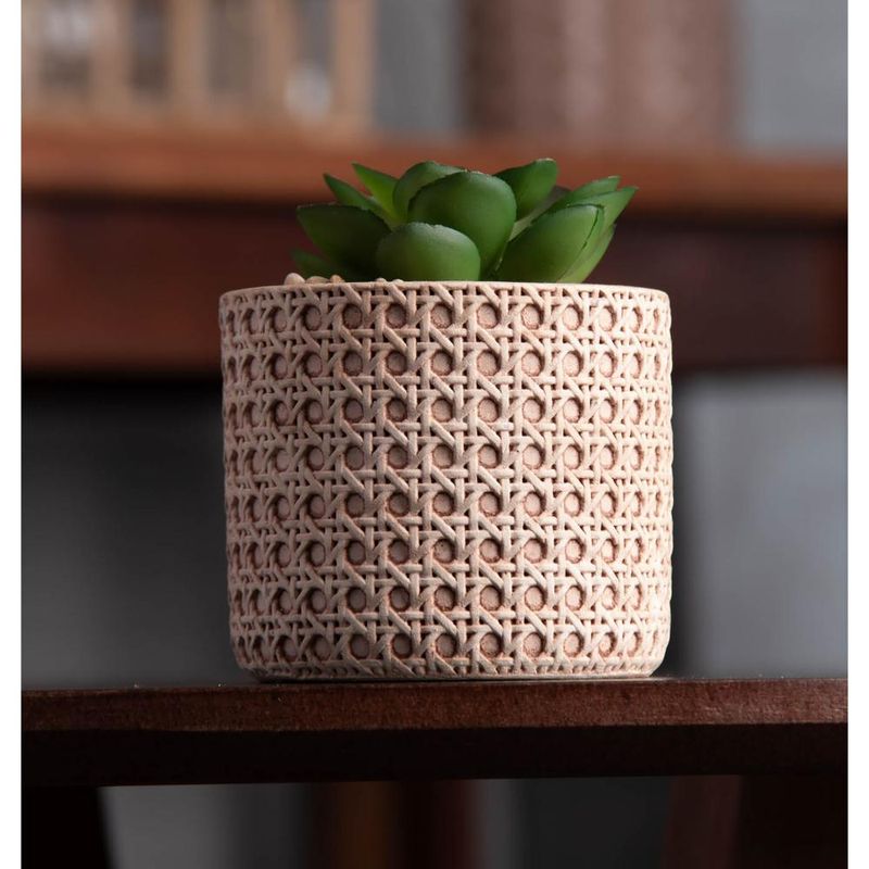 Cachepot Wolff de Cerâmica com Suculenta Treliça 7,5cmDescubra o encanto natural e a serenidade que o Cachepot de Cerâmica com Suculenta Treliça da Wolff proporciona. Mais do que um simples elemento decorativo, este conjunto é uma manifestação de elegância e tranquilidade para o seu espaço.Conexão com a Natureza em CasaCom suas medidas de 7,5cm x 7,5cm x 10,5cm, o cachepot foi meticulosamente desenhado para acomodar uma suculenta treliça, trazendo um toque de frescor e vitalidade ao ambiente.Design Encantador em CerâmicaFeito com cerâmica de alta qualidade, o cachepot se destaca pela sua beleza e durabilidade. Seu design encantador adiciona um toque de sofisticação a uma variedade de estilos de decoração.Toque de FrescorA suculenta treliça acrescenta uma camada extra de frescor e elegância ao conjunto, ideal para quem busca uma decoração que harmonize com a natureza.Versatilidade CompactaCom suas dimensões compactas, este cachepot é perfeito para realçar mesas, prateleiras ou até mesmo para dar vida a espaços pequenos.Deixe o Cachepot de Cerâmica com Suculenta Treliça da Wolff ser o destaque que enriquece seu ambiente, trazendo uma sensação de serenidade e frescor.Wolff. A melhor experiência em receber, servir e decorar!Contém: 1 CachepotLava Louça: NãoMicroondas: NãoForno: NãoFogão: NãoFreezer: NãoMedidas Produto: Altura 8,50cm x Largura 7,50cm x Comprimento 7,50cmPeso: 0,25KgCor: NaturalMaterial: PorcelanaLimpar com flanela branca e seca