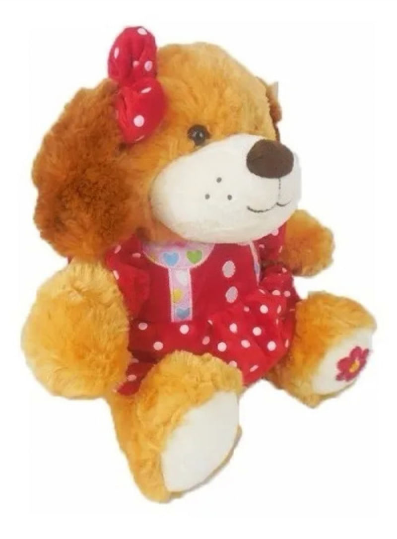 Linda cachorrinha de pelúcia com vestidinho - super fofinha e macia. Perfeita para a criança dormir abraçadinha, ou para a decoração do quartinho. Modelo disponível em 3 opções de cores: vinho, vermelho ou rosa. Em todas as opções, a cachorrinha vem trajada com um lindo vestidinho e com laço de fitinha na cabeça. Fofura demais! Medidas:35 cm sentada Material: pelúcia e poliéster Marca: Fizzy