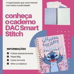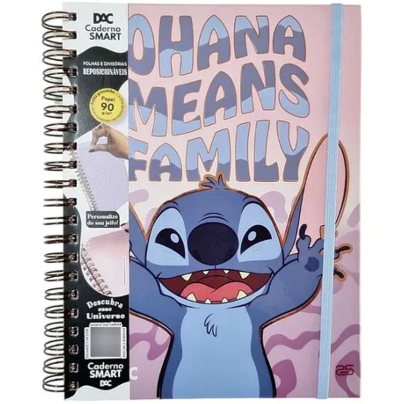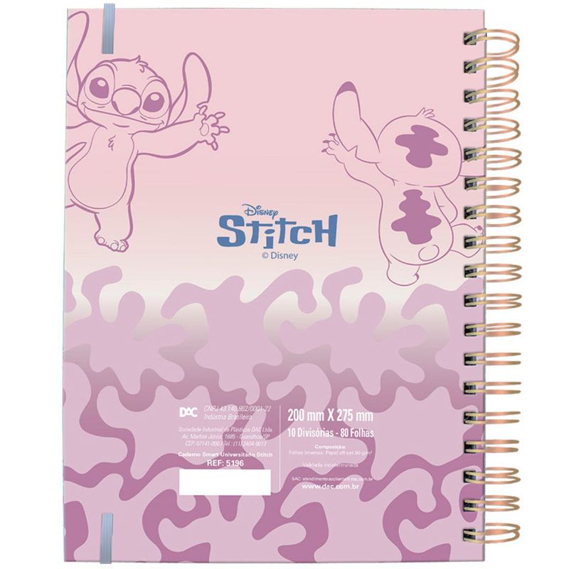 CADADERNO UNIVERSITÁRIO SMART STITCH 80FLS 90G - 5196 - DAC O Caderno Smart Universitário em Wire-o é lindo, sofisticado e muito resistente, pois o espiral é de metal grosso e totalmente fixo com a capa. O elástico impede das folhas ficarem balançando ou com o risco de cair e desmontar. Smart porque é versátil, é possível remover, acrescentar e reordenar as folhas sem qualquer dano a elas ou à estrutura do caderno. Tipo um fichário, mas muito mais fácil. O caderno conta com 10 divisórias e 80 folhas reposicionáveis com a gramatura 90gr cada. A tinta da caneta não vaza na folha seguinte.Cor: EstampadoFormato: 20 cm x 27,5 cm x 3 cmQuantidade: UnitárioComposição: Papel offset 90gDetalhes: Com 80 Folhas reposicionáveis 90g (40 azul + 40 rosa), Wire-o, Capa com aplicação de hot stamping, material resistente e elástico para fechamento.