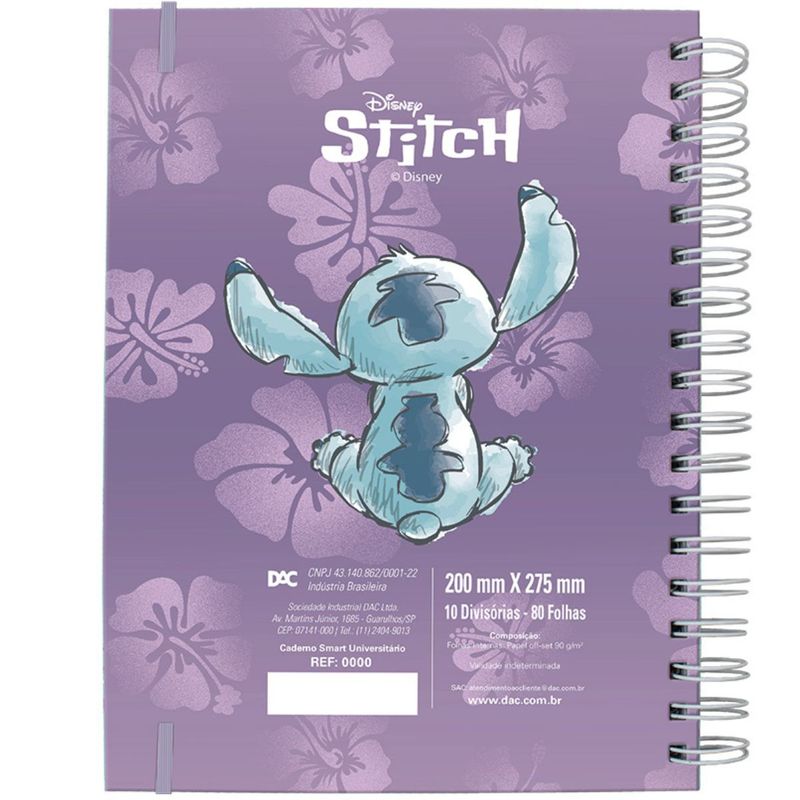 CADADERNO UNIVIVERSITÁRIO SMART STITCH 80FL 90G - 5378 - DAC Se você é fã do Stitch, prepare-se para se apaixonar! Nosso Caderno Smart Wire-O do Stitch combina o encanto desse personagem adorável com toda a funcionalidade que você precisa no dia a dia.Destaques que fazem a diferença:-Capa dura e resistente, com acabamento premium e uma ilustração exclusiva do Stitch que vai arrancar suspiros por onde passar.-Encadernação Smart Wire-O, que permite virar as páginas com facilidade, sem amassar, e manter o caderno sempre aberto na sua mesa.-Miolo pautado de alta qualidade, ideal para anotações, estudos, diários ou ideias brilhantes.-Tamanho perfeito para caber na mochila e te acompanhar na escola, faculdade ou no trabalho.-Detalhes internos personalizados, com toques sutis do universo de Lilo & Stitch em cada página.Seja para organizar sua rotina ou dar um toque de magia à sua escrita, esse caderno é mais do que um item de papelaria — é um pedaço do seu mundo encantado com o Stitch!Leve com você quem entende que “ohana significa família” — e esse caderno logo vai fazer parte da sua. Com 80 folhas e encadernação espiral, o caderno permite que você reposicione as folhas conforme necessário, garantindo flexibilidade durante os estudos. Com dimensões de 20 cm de comprimento e 27,5 cm de largura, ele é compacto o suficiente para ser transportado facilmente em mochilas ou pastas.A linha Caderno Smart da DAC é reconhecida pela qualidade de seus materiais, com folhas de 90g que oferecem uma escrita suave e sem borrões. Ideal para quem precisa de um caderno que acompanhe o ritmo acelerado da vida universitária, este produto combina funcionalidade e um design atraente.
