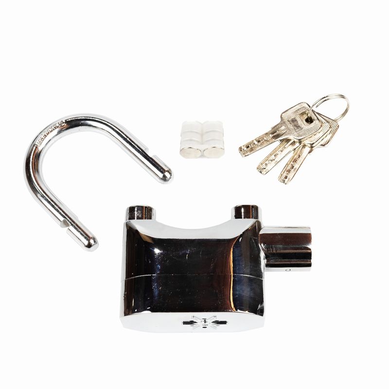 CADEADO LOCK ALARM MODELO K101A Descrição Técnica: Resistente à corrosão e às intempéries e com prova de spray de gelo e resistente ao sal e ao mau tempo. O módulo do alarme pode ser removível e com sensor duplo de choque de movimento, seu armamento é com chave codificada. Características: Anti Broca Anti pára-choques impede coçar Módulo de alarme removível Choque DUAL e Sensor de movimento Braço Baterias à prova de choque Baterias de 12 botões (estilo de relógio digital), duração da bateria: 6 meses Itens Inclusos: Chaves e baterias Dados do produto: Garantia: 3 (Meses) Marca: LOCK ALARM NCM: 8301.10.00 EAN: 6928026420685 Dados de Embalagem: Peso Total (Produto + Embalagem): 540 (gr) Altura: 9.80(cm) Largura: 7.10(cm) Profundidade: 3.30(cm)