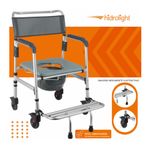 Cadeira de Banho Desmontável de Alumínio Hidrolight SC101 A Cadeira de Banho Desmontável Hidrolight SC101 é a solução completa para higienização segura e confortável, especialmente desenvolvida para pessoas com mobilidade reduzida, fraqueza muscular ou déficit de equilíbrio. Com estrutura de alumínio leve e resistente, oferece total praticidade com design desmontável que facilita transporte e armazenamento. Equipada com rodas giratórias 360° e freios de segurança, garante controle total durante o uso. Os apoios para pés removíveis proporcionam maior conforto, enquanto a montagem é simples e rápida, sem necessidade de ferramentas. Registro ANVISA: 80758210054. Suporta até 135kg com total segurança e durabilidade. Principais Benefícios Estrutura de alumínio: leve, robusta e resistente à corrosão; Rodas 360° com freios: mobilidade total com segurança garantida; Design desmontável: fácil transporte e armazenamento compacto; Apoios removíveis: maior conforto e adaptabilidade de uso; Montagem sem ferramentas: praticidade e facilidade de instalação; Fácil higienização: limpeza rápida e eficiente; Alta capacidade: suporta até 135kg com total segurança; Altura ajustável: adaptação personalizada às necessidades. Indicações Ideal para pessoas com mobilidade reduzida, fraqueza muscular ou comprometimento de equilíbrio, a Cadeira de Banho Hidrolight SC101 facilita a higienização pessoal e oferece suporte durante o banho ou necessidades fisiológicas.