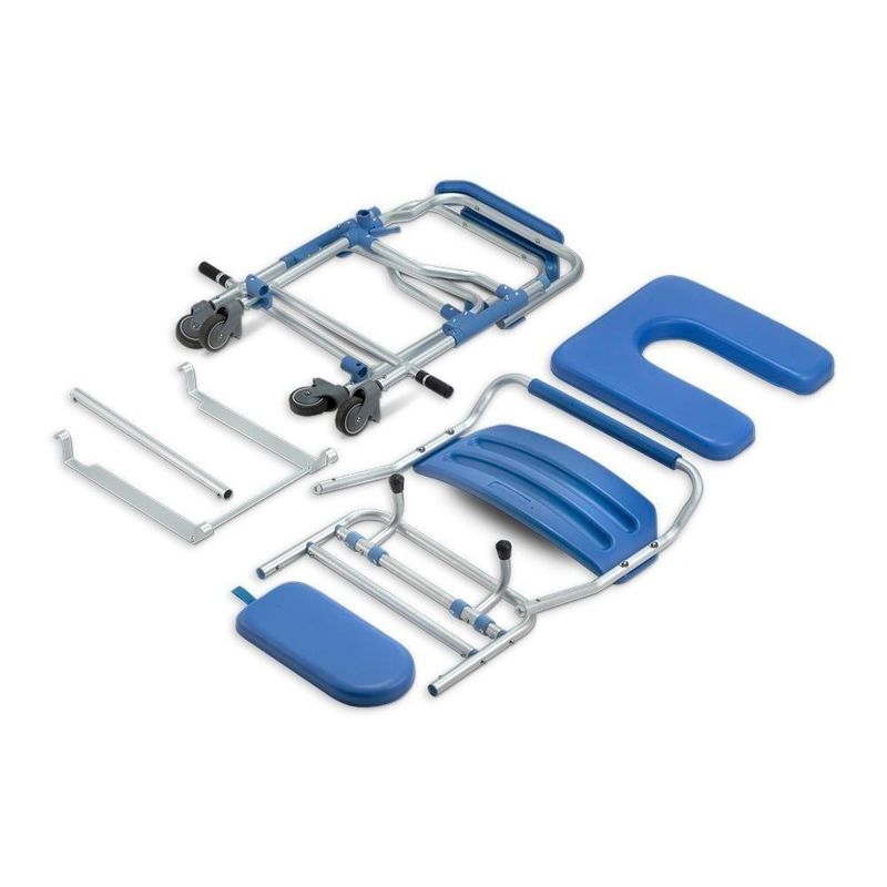 Cadeira De Banho Dellamed Em Alumínio Assento 42cm Até 150 Kg Azul E Cinza D60Cadeira de Banho Dellamed em Alumínio Assento 42cm até 150 Kg Azul e Cinza D60A Cadeira de Banho Higiênica de Alumínio D60 Dellamed é um produto multifuncional desenvolvido para atender às necessidades de adultos e idosos que possuem restrições de mobilidade. A D60 pode ser usada sobre o vaso sanitário, no banho e para locomoção interna na casa. Além disso, possui assento frontal removível que facilita a higienização do usuário sentado. A cadeira possui 4 rodas com travas que facilitam o transporte interno mesmo em locais com espaços reduzidos.A D60 é dobrável, possui encosto em plástico anatômico reforçado e apoio de braços escamoteáveis com sistema de engate e desengate rápido (pino click) para facilitar o acesso a lateral da cadeira. A cadeira vem equipada com assento acolchoado impermeável, comadre e apoio de pés rebatível com sistema anti-tombo.- Suporta até 150kg.- 4 em 1: transporte interno, banho, sobrevaso e higiene.- Fácil de manusear devido ao baixo peso.- Rodízios 360º permitem mobilidade total em ambientes com espaço reduzido.- Largura do assento: 42cm.- Conta com assento almofadado, impermeável e com tampa removível.- Acompanha comadre removível.- Dobrável: Mais praticidade e fácil armazenamento.- Facilita a higienização do paciente sentado.- Com sistema tip assist: assistente para desníveis.- Sistema anti-tombo rebatível.- Cadeira desmontável, ocupa pouco espaço.- Confortável para transporte interno.- Alta resistência a umidade, ideal para regiões litorâneas.Especificações Técnicas:Marca: DellamedModelo: D60Cor: Azul e CinzaCapacidade: Até 150KgChassi: Em alumínio e antiferrugemEncosto: Plástico termo moldado resistenteRodas: Giratórias com travasApoio de mãos do condutor: AcolchoadoCadeira desmontável: SimApoio de pés: Rebatível e removívelDimensões e Peso do Produto:Altura: 102 cmLargura: 62 cmProfundidade: 80 cmPeso: 7,5 kgGarantia:01 Ano estrutura (Sendo 3 meses de garantia legal e mais 9 meses de garantia para defeito de fabricação).3 meses de garantia legal para os demais componentes.