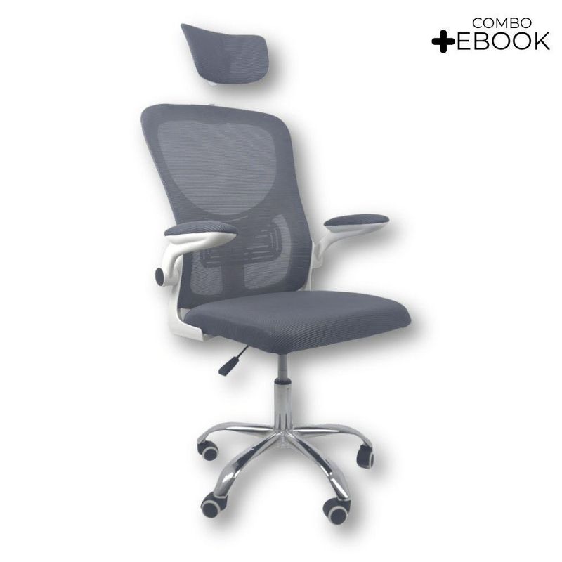 Cadeira De Escritório Diretor Oficial Vegas Com Apoio Cinza BrancoCadeira Diretor Vegas – Design, Conforto e Sofisticação para Seu EscritórioA Cadeira Diretor Vegas é a escolha ideal para quem busca elegância, conforto e funcionalidade no ambiente corporativo ou home office. Desenvolvida com design moderno e estrutura resistente, ela oferece suporte ergonômico completo, garantindo bem-estar e produtividade durante longas jornadas de trabalho.Com encosto alto em Tela Mesh respirável, a Vegas proporciona ventilação constante e conforto térmico. Seu sistema de regulagem permite ajustes personalizados, enquanto o acabamento em aço cromado adiciona um toque de sofisticação ao seu espaço de trabalho. Diferenciais do Produto:Design Executivo e Elegante: Combina estilo moderno com acabamento refinado.Encosto Ergonômico: Revestido em tela Mesh respirável, promove conforto e postura adequada.Apoio de Cabeça Ajustável: Suporte cervical para conforto prolongado.Apoio Lombar Integrado: Mantém a postura correta, reduzindo a fadiga.Apoio de Braços Retrátil com Elevação: Versatilidade e praticidade no uso diário.Ajuste de Altura com Pistão a Gás: Personalize a posição ideal de acordo com sua estatura.Base Giratória em Aço Cromado: Alta resistência, durabilidade e um visual sofisticado.Rodas de Nylon Silenciosas: Mobilidade suave e segura em diferentes superfícies.Mecanismo Pneumático de Ajuste: Permite regulagens precisas com facilidade.Extras: Acompanha e-book exclusivo. Especificações Técnicas:Modelo: VegasMarca: Oficial WebshopLinha: DiretorTipo de Cadeira: DiretorMaterial da Estrutura: Aço cromado e polipropileno reforçadoMaterial do Encosto: Tela Mesh respirávelMaterial do Assento: Espuma de alta densidade revestida em tecido poliésterPeso Máximo Suportado: 120 kg Recursos e Funcionalidades:Ergonômica: SimGiratória: SimAjuste de Altura: Sim (pistão a gás)Apoio de Cabeça: Sim (ajustável)Apoio Lombar: SimApoio de Braços: Sim (retrátil e com elevação)Encosto Reclinável: SimRodízios: Sim (nylon silencioso) Dimensões do Produto:Altura Total (mín./máx.): 94 cm a 126 cmAltura do Assento (mín./máx.): 41 cm a 50 cmAltura do Encosto: 60 cmAltura do Encosto de Cabeça: 17 cm (ajustável até 20 cm)Largura do Assento: 46 cmProfundidade do Assento: 48 cmLargura entre Braços: 42 cmLargura Total (braços externos): 68 cmDistância dos Pés: 65 cmCapacidade de Carga: Suporta até 120 kg Cuidados e Manutenção:A limpeza pode ser realizada com pano úmido e detergente neutro. Evite produtos abrasivos para preservar o acabamento cromado e a tela Mesh, garantindo maior durabilidade da cadeira. Sofisticação e Conforto para Seu Escritório!Transforme seu ambiente com a Cadeira Diretor Vegas e desfrute de um design ergonômico, moderno e funcional. Ideal para quem busca um produto que alia conforto, praticidade e elegância no dia a dia de trabalho.