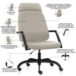 Domine seu dia com conforto e estilo com a Cadeira de Escritório Giratória com Apoio de Cabeça Hub, da Lyam Decor, a aliada perfeita para você alcançar seus objetivos. Para profissionais exigentes, essa cadeira executiva é a solução perfeita para quem busca conforto, durabilidade e design. Afinal, a combinação de elementos como o apoio de cabeça, assento e encosto com espuma de alta densidade e design ergonômico proporciona horas de trabalho sem interrupções. Para completar, a base giratória facilita a mobilidade e fluidez durante a dinâmica laboral ou de estudos. Ideal para ambientes corporativos, como escritório, sala comercial e home office, essa cadeira giratória une resistência e beleza para elevar sua produtividade. Aproveite e adicione agora mesmo ao seu carrinho! Dimensões da Cadeira (L x A x P) 75 x 114 x 75,5 cm Medidas Internas: Encosto (L x A): 59 x 66,5 cm Assento (L x P): 60 x 48 cm Altura total ajustável: de 114 a 125,5 cm Altura ajustável do chão ao assento: de 42 a 55 cm Altura ajustável do chão ao braço: de 63,5 a 76,5 cm Características: Assento, encosto e apoio de cabeça estruturados em compensado anatômico, multilaminado, resinado e prensado com espessura de 20mm, e tapeçados com espumas flexíveis de poliuretano injetado, com espessura média de 48mm. Revestimento em tecido Sintético de alta qualidade na cor Areia. Base giratória com cinco patas, formato arcado e com barra de reforço interna. Mecanismo com ajuste de altura do assento, por meio de alavanca. Apoio de braços em poliuretano integral skin, fixo com textura e com borda curvada para baixo, para melhor conforto. Peso máximo suportado 150 kg. Produto em conformidade com as normas brasileiras e internacionais. - Por se tratar de estofado as medidas podem ter uma pequena variação de até 3 cm. - A tonalidade do produto real poderá ter ligeira variação devido o lote de tecidos. Observações importantes: - Produto para uso residencial em ambiente interno, não devendo ficar exposto diretamente ao sol, calor e umidade excessivos. - Pode haver alguma diferença de tonalidade entre a imagem e o produto real, por conta do tratamento de imagens e a calibração de cores do seu monitor. - As imagens são meramente ilustrativas, não acompanham objetos de decoração e eletrônicos. - Ao receber a mercadoria, o cliente deve verificar as condições da embalagem, caso haja alguma avaria não assine o comprovante de recebimento e entre em contato com nossa loja para orientações. - Montagem, desmontagem e outras instalações serão de responsabilidade do cliente. Não nos responsabilizamos, no ato da entrega, por subir escadas/elevadores ou pelo transporte por guincho em apartamentos. Eventuais despesas são de responsabilidade do comprador. - Confira as dimensões do produto e certifique-se de que passará normalmente por supostos elevadores, portas, escadas e/ou corredores de sua residência. - Para mais informações, acesse nossa Central de Atendimento.
