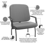 Cadeira De Escritório Recepção Com Braço Fixa Preta Magno P03 Vinil Cinza - Lyam DecorDescubra a Cadeira de Escritório Magno Pés Preto, da Lyam Decor, a escolha perfeita para quem valoriza conforto e estilo sem abrir mão da robustez.Com um design pensado para o acomodar usuários com sobrepeso, essa cadeira plus size é ideal para escritórios, salas de espera e recepções, oferecendo um acolhimento excepcional. Além disso, é fabricada com uma estrutura de aço carbono resistente e um acabamento epóxi que garante durabilidade e resistência, combinando funcionalidade e elegância. Para completar, o assento amplo e confortável proporciona uma experiência de uso agradável, seja para longas horas de trabalho ou momentos de espera. Transforme seu espaço com a Cadeira Magno, onde cada detalhe foi pensado para garantir o máximo de conforto e acolhimento, criando um ambiente convidativo e profissional! Dimensões da Cadeira (L x A x P) 87 x 104 x 72,5 cm Medidas Internas: Encosto (l x A): 74,7 x 65,5 cm Assento (L x P): 76,8 x 50,8 cm Altura do chão ao assento: 44,2 cm Características: Estrutura fixa com quatro pés e travessas em tubo de aço carbono, com superfície metálica em nanocerâmica e revestimento com pintura eletrostática epóxi Preto para maior proteção contra corrosão e durabilidade. Apoio de braço em tubo de aço carbono, design oblonga, com capa em termoplástico de polipropileno. Revestimento em tecido Vinil de alta qualidade na tonalidade Cinza. Assento e encosto com estrutura de madeira e tapeçaria compostos por espuma flexível de poliuretano (PU), com espessura média de 70mm. Peso máximo suportado 250 kg. Produto com Laudo Ergonômico NR 17 e certificação ABNT NBR 9050:2020. - Por se tratar de estofado as medidas podem ter uma pequena variação de até 3 cm. - A tonalidade do produto real poderá ter ligeira variação devido o lote de tecidos. Observações importantes: - Produto para uso residencial em ambiente interno, não devendo ficar exposto diretamente ao sol, calor e umidade excessivos. - Pode haver alguma diferença de tonalidade entre a imagem e o produto real, por conta do tratamento de imagens e a calibração de cores do seu monitor. - As imagens são meramente ilustrativas, não acompanham objetos de decoração e eletrônicos. - Ao receber a mercadoria, o cliente deve verificar as condições da embalagem, caso haja alguma avaria não assine o comprovante de recebimento e entre em contato com nossa loja para orientações. - Montagem, desmontagem e outras instalações serão de responsabilidade do cliente. Não nos responsabilizamos, no ato da entrega, por subir escadas/elevadores ou pelo transporte por guincho em apartamentos. Eventuais despesas são de responsabilidade do comprador. - Confira as dimensões do produto e certifique-se de que passará normalmente por supostos elevadores, portas, escadas e/ou corredores de sua residência. ColorSupplier: Cinza | Com rodas: Não | Cor: Cinza | Com apoio de braços: Sim | ColorSimple: Cinza | Materiais do aro para pés: na | Modelo: Magno | Modelo detalhado: Magno com Braço Base Preta | Número de registrocertificação INMETRO: ABNT NBR 13962, NR 17 | MaterialFamily: Vinil | ProductInstructions: Produto para uso em ambiente interno, nao devendo ficar exposto ao sol, calor e umidade excessivos. | ProductHeight: 104 cm | Formato de venda: Unitário | Model: Magno | ProductContents: 01 Cadeira, manual de instruções | ProductWidth: 87 cm | Tipo de cadeira de escritório: Cadeira Recepção, Sala de Espera | ColorFamily: Cinza | Color: Cinza | Com aro para pés: Não | Material: Tubo de Aço Carbono, Espuma Flexível Poliuretano, Vinil | Material do estofamento: Vinil | OriginState: PR | ProductWeight: 34 kg | ProductLength: 72 cm | SizeDescription: Altura: 104 cm x Largura: 87 cm x Profundidade: 72 cm | OriginCountry: Brasil | Requer montagem: Sim | SupplierSimpleName: Cadeira de Escritório Recepção com Braço Fixa Preta Magno P03 Vinil Cinza - Lyam Decor | ProductWarranty: 90 dias após o recebimento do produto