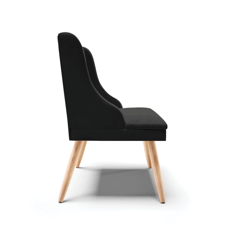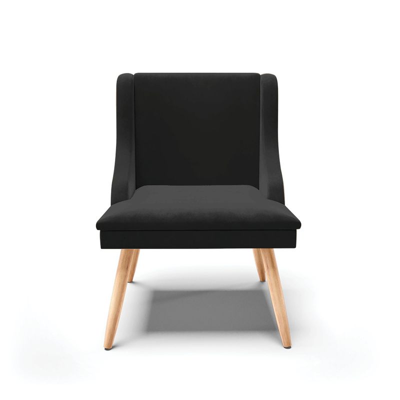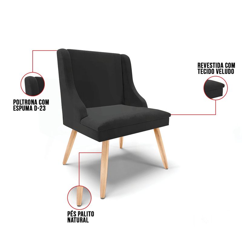 Experimente deixar sua decoração com bom gosto e qualidade com a cadeira de jantar Liz. É perfeita para você não abre mão de qualidade e requinte na hora das refeições e confraternizações com amigos e familiares. Produzida com Pés Palito Natural que suportam até 120 kg, estrutura ecologicamente correta de madeira de eucalipto e pinus, oferece durabilidade e qualidade ao móvel, seu estofamento é com espuma de densidade D-23, revestido em tecido Veludo no tom Preto. Sofisticada e excelente para deixar sua sala de jantar mais aconchegante. Compre sem sair de casa!DimensõesAltura total: 85 cmLargura total: 55 cmProfundidade total: 55 cmAltura do encosto: 40 cmLargura do assento: 45 cmProfundidade do assento: 50 cmAltura do chão ao assento: 45 cmEspessura do assento: 10 cmTamanho dos pés: 35 cmPeso: 9 kgEspecificações do ProdutoEstrutura: Madeira EucaliptoEspuma: D-23Tecido: VeludoTipo de pés: Palito Palito NaturalPeso suportado: Até 120 KgGarantia: 90 dias contra defeito de fabricaçãoMontagem: O produto vai montado, apenas rosquear os pésInstruções de limpeza: Utilizar um pano limpo e levemente úmidoVocê irá receber: 01 volume com 01 produtoObservações Relevantes- Todos os produtos vão embalados com total segurança;- As cores dos produtos podem sofrer alterações dependendo do seu monitor;- Para futuras compras, não garantimos a mesma tonalidade de cor, pois existe variação a cada lote do fabricante do tecido;- As imagens são meramente ilustrativas, não acompanham objetos de decoração e eletros;- Confira as dimensões do produto no momento da compra e certifique-se de que passará normalmente por escadas, elevadores, portas e corredores;- Importante: Por se tratar de estofado as medidas podem ter uma pequena variação em até 3 cm;- Não nos responsabilizamos no ato da entrega por montagens, desmontagens, instalações de produtos;- Não nos responsabilizamos no ato da entrega por subir escadas, elevadores, nem utilização de guinchos ou equipamentos similares para acesso a pisos superiores em apartamentos;- A entrega do produto é realizada em todo território nacional, até onde as rodovias alcançam, entregas fluviais ou aéreas devem ser cotadas a parte;- Observando as orientações acima, evita-se futuros desagrados ou imprevistos com a entrega do produto. Havendo despesas adicionais, serão de responsabilidade do cliente;