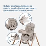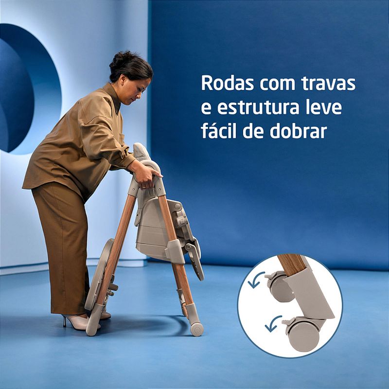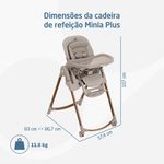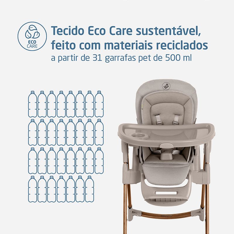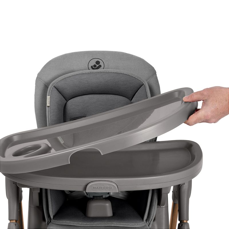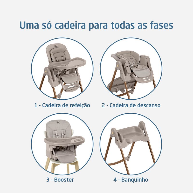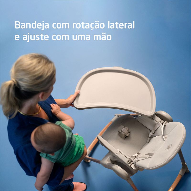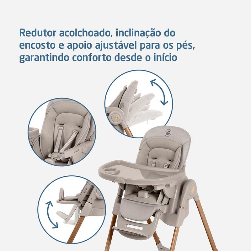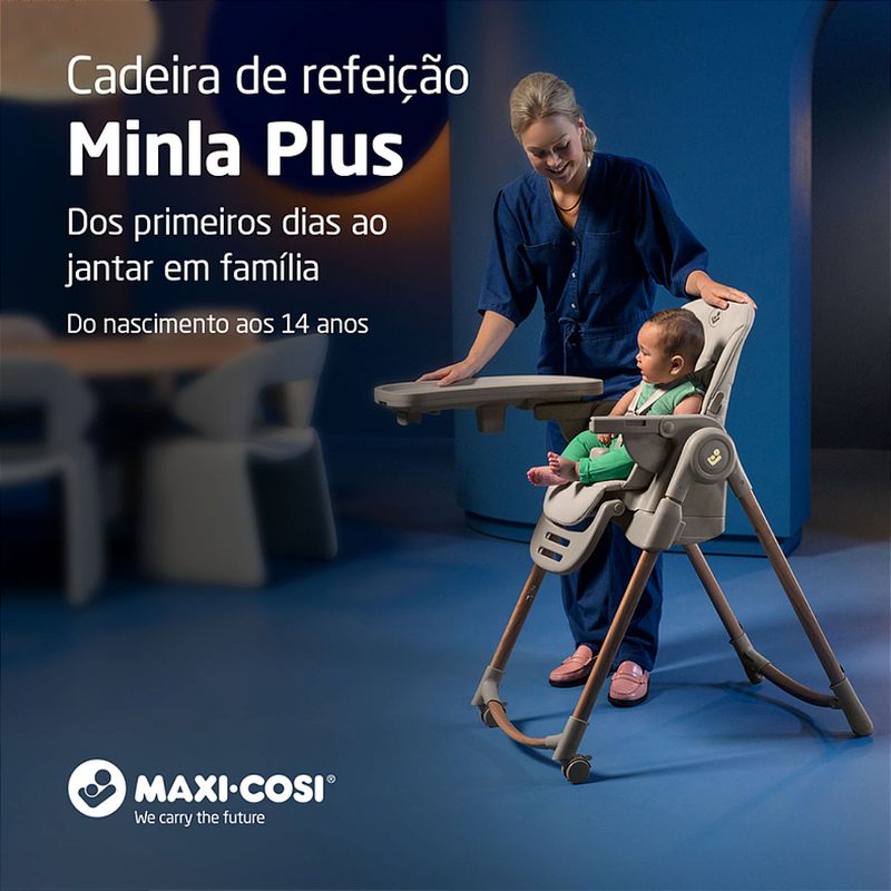 Cadeira de Refeição Minla Plus Elegance Gaphite - Maxi Cosi A Minla Plus é a cadeira que acompanha a criança do nascimento à adolescência com conforto, segurança e ajustes inteligentes para cada momento ao redor da mesa. A Minla Plus é feita para acompanhar o seu bebê desde o nascimento até os 14 anos, se adaptando a cada nova fase da infância. Com modos de uso que vão de cadeira de descanso a banquinho, ela combina conforto, praticidade e beleza em um só produto. São nove posições de altura, cinco níveis de inclinação, apoio para os pés com ajuste e uma bandeja que gira e se ajusta com uma só mão. Ela também vem com redutor acolchoado para recém-nascidos, cinto que se ajusta conforme a idade e tecidos Eco Care, feitos com materiais 100% reciclados. As quatro rodas facilitam a movimentação dentro de casa, e a limpeza também é simples: a bandeja pode ir direto para a lava-louças e o tecido para a máquina de lavar. Cadeira de descanso, cadeira de alimentação, booster e banquinho. Altura ajustável em 9 posições, para acompanhar o crescimento e adaptar-se a diferentes alturas de mesas. Encosto com 5 níveis de inclinação, proporcionando conforto em momentos de descanso ou refeições. Bandeja com 3 posições e rotação lateral com uma mão, permitindo colocar e retirar a criança com facilidade. Bandeja removível e compatível com lava-louças, facilitando a limpeza após as refeições. Revestimento lavável à máquina, garantindo mais praticidade no dia a dia. Apoio para os pés com 2 ajustes de altura, para garantir suporte adequado em todas as fases. Cinto de segurança que passa de 5 para 3 pontos, adaptando-se conforme a idade da criança. Redutor acolchoado para recém-nascidos, oferecendo suporte ergonômico desde os primeiros dias. Tecidos Eco Care feitos 100% de materiais reciclados, com toque macio e acabamento durável. Quatro rodas, sendo duas frontais com trava, para movimentar a cadeira pela casa com segurança e facilidade. Estrutura dobrável e leve, que permite guardar a cadeira de forma prática mesmo em espaços reduzidos. NORMA ABNT NBR 1599115991:2011 Posições de altura: 9 posições Encosto reclinável: 5 posições Bandeja: 3 posições e rotação lateral Porta-copo: Sim Apoio para os pés: Apoio para os pés com 2 ajustes de altura Dobrável: Estrutura dobrável e leve Desmontável: Sim Cinto de segurança: Cinto de 5 pontos ajustável Composição/materialPP, PA, TPE, POM, ABS, PU, Poliéster, Aço Peso do Produto: 11,8 kgs Dimensões Externa do Produto (A x L x P | cm): 107 x 57,4 x 83-86,7 Registro: 004102/2025