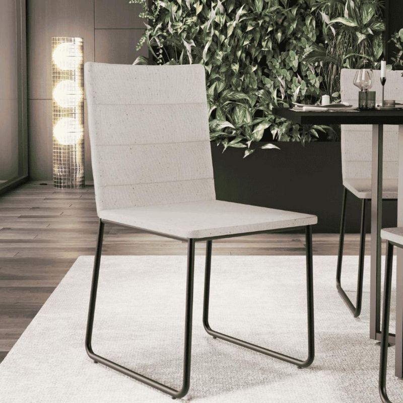 O espetáculo que é a Cadeira Maya, chega para agregar ainda mais valor na decoração da sua casa! Sua estrutura em aço remete-nos ao estilo industrial que surgiu em Nova York no século XX, já o assento e encosto estofados trazem equilíbrio e conforto criando a combinação perfeita para o ambiente. Podendo ser disposta em salas de Jantar Preto, cozinha ou espaço gourmet, dentre outras opções, se destaca com muita elegância e personalidade. Recepcione os amigos e familiares na sua casa com o melhor do conforto e design Slim de forma agradável. Você e seu lar merecem, aproveite! Dimensões da Cadeira (L x A x P) 44 x 85 x 51 cm Medidas Internas: Altura do Assento ao chão: 45 cm Largura do assento: 40,5 cm Profundidade do assento: 43 cm Altura do encosto: 41,5 cm Largura do encosto: 34 cm Características: Assento e encosto estruturados em madeira, produzidos com espuma D-26, com detalhes em costuras. Pintura eletrostática epóxi de alta resistência à riscos e umidade, na cor preto. Revestimento em Linho Cru. Suporta até 100kg. - Produto entregue desmontado. - Por se tratar de estofado as medidas podem ter uma pequena variação de até 3 cm. - A tonalidade do produto real poderá ter ligeira variação devido o lote de tecidos. - A limpeza deve ser feita com pano levemente umedecido em água limpa, sem esfregar, não utilizar produtos abrasivos, desengordurantes, álcool ou solvente. Observações importantes: - Produto para uso residencial em ambiente interno, não devendo ficar exposto diretamente ao sol, calor e umidade excessivos. - Pode haver alguma diferença de tonalidade entre a imagem e o produto real, por conta do tratamento de imagens e a calibração de cores do seu monitor. - As imagens são meramente ilustrativas, não acompanham objetos de decoração e eletrônicos. - Ao receber a mercadoria, o cliente deve verificar as condições da embalagem, caso haja alguma avaria não assine o comprovante de recebimento. - Montagem, desmontagem e outras instalações serão de responsabilidade do cliente. Não nos responsabilizamos, no ato da entrega, por subir escadas/elevadores ou pelo transporte por guincho em apartamentos. Eventuais despesas são de responsabilidade do comprador. - Confira as dimensões do produto e certifique-se de que passará normalmente por supostos elevadores, portas, escadas e/ou corredores de sua residência.