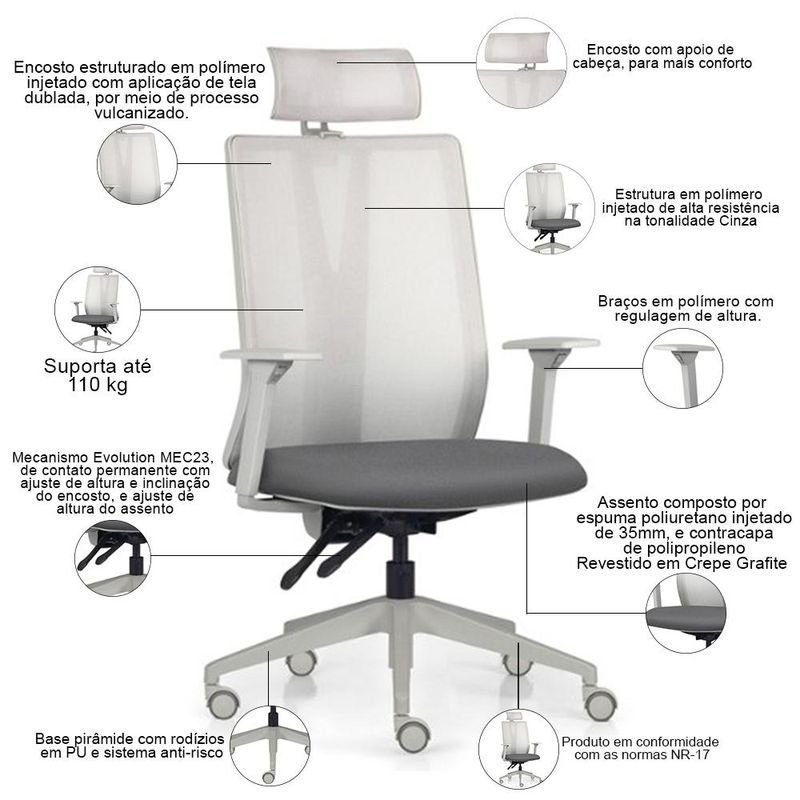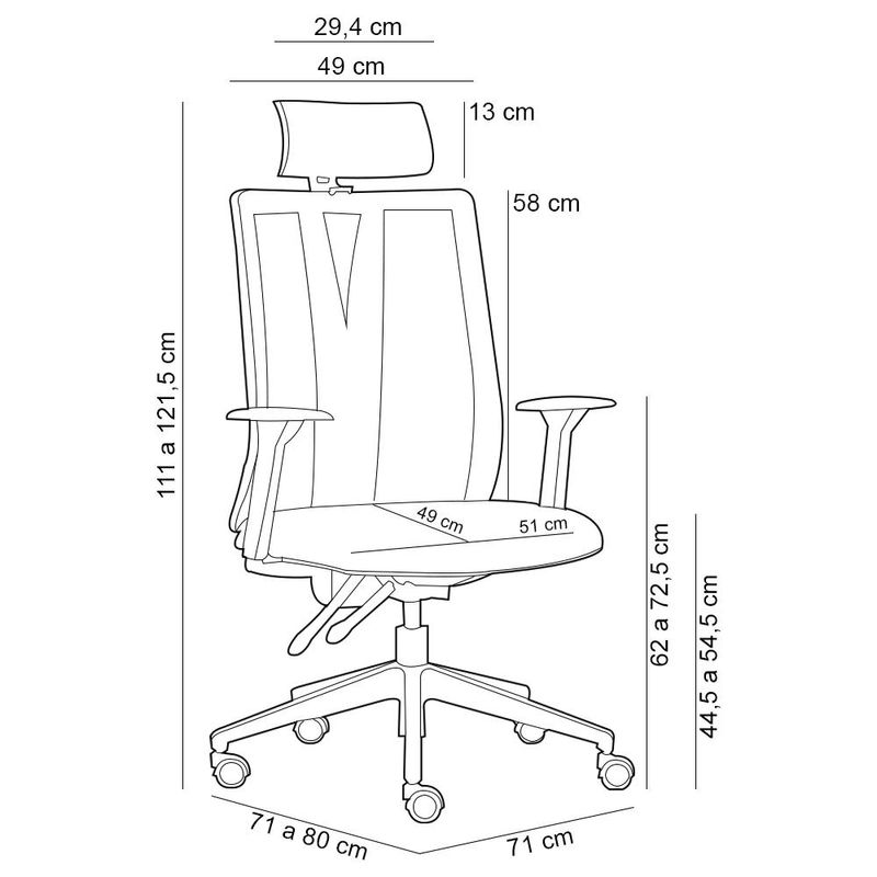 A Cadeira de Escritório Presidente Flow, da Lyam Decor, se destaca como a verdadeira protagonista do conforto e da produtividade. Com um design moderno que une estética e funcionalidade, ela se adapta perfeitamente ao seu estilo, seja no escritório convencional ou no aconchego do home office. Equipada com um mecanismo Evolution, um sistema de contato permanente, essa cadeira giratória abraça as suas necessidades, permitindo ajustes precisos na altura do assento, do encosto e dos braços. Cada detalhe foi pensado para proporcionar um suporte ideal, respeitando o biotipo do usuário e promovendo uma postura saudável durante longas horas de trabalho. Já a base pirâmide, adornada com rodízios em PU e sistema anti-risco, desliza suavemente sobre qualquer superfície, garantindo movimentos ágeis e seguros. Por fim, o encosto com apoio de cabeça completa a experiência, permitindo que você se concentre no que realmente importa, enquanto sua mente flui livremente. Com a cadeira presidente Flow sua jornada laboral será transformada em uma experiência prazerosa e produtiva. Sente-se, ajuste-se e deixe a inspiração fluir! Dimensões da Cadeira (L x A x P) 71 x 111 x 71 cm Medidas Internas: Altura máxima regulável: até 121,5 cm Altura regulável do chão ao assento: 44,5 a 54,5 cm Altura do chão aos braços: 62 a 72,5 cm Assento livre (L x P): 51 x 49 cm Encosto (L x A): 49 x 58 cm Encosto de cabeça (L x A): 29,4 x 13 cm Profundidade total com o encosto reclinado: 80 cm Características: Estrutura em polímero injetado de alta resistência na tonalidade Cinza. Assento estofado com espuma injetada em poliuretano de 35mm e contracapa de polipropileno. Revestimento em tecido Crepe de alta qualidade na tonalidade Grafite. Encosto estruturado em polímero injetado com aplicação de tela dublada, por meio de processo vulcanizado. Mecanismo Evolution MEC23, de contato permanente com ajuste de altura e inclinação do encosto, e ajuste de altura do assento, de acordo com o biotipo do usuário. Braços em polímero com regulagem de altura. Encosto com apoio de cabeça, para mais conforto. Base pirâmide com rodízios em PU e sistema anti-risco. Peso máximo suportado 110 kg, com uso recomendado de 8 horas diária. Produto em conformidade com as normas NR-17. - Por se tratar de estofado as medidas podem ter uma pequena variação de até 3 cm. - A tonalidade do produto real poderá ter ligeira variação devido o lote de tecidos. Observações importantes: - Produto para uso residencial em ambiente interno, não devendo ficar exposto diretamente ao sol, calor e umidade excessivos. - Pode haver alguma diferença de tonalidade entre a imagem e o produto real, por conta do tratamento de imagens e a calibração de cores do seu monitor. - As imagens são meramente ilustrativas, não acompanham objetos de decoração e eletrônicos. - Ao receber a mercadoria, o cliente deve verificar as condições da embalagem, caso haja alguma avaria não assine o comprovante de recebimento e entre em contato com nossa loja para orientações. - Montagem, desmontagem e outras instalações serão de responsabilidade do cliente. Não nos responsabilizamos, no ato da entrega, por subir escadas/elevadores ou pelo transporte por guincho em apartamentos. Eventuais despesas são de responsabilidade do comprador. - Confira as dimensões do produto e certifique-se de que passará normalmente por supostos elevadores, portas, escadas e/ou corredores de sua residência. - Para mais informações, acesse nossa Central de Atendimento.