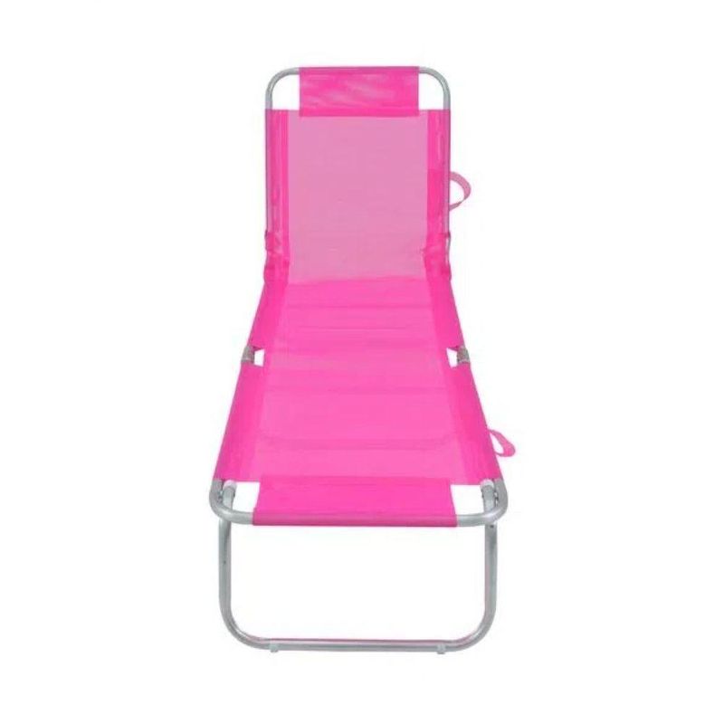 Cadeira Espreguicadeira Rosa BelA espreguiçadeira BEL foi projetada exclusivamente para os seus momentos de lazer em dia de sol! É ideal para praias, piscinas ou campo, proporcionando conforto, resistência e praticidade.Informações:· Tela 100% Textilene (Poliéster com revestimento em PVC)· Estrutura resistente em tubos de Alumínio· Ajustável em 4 posições· Dobrável· Sapatas antiderrapante· Contém alça para facilitar o transporte· Mais praticidade e conforto· Produzida com materiais que garantem a qualidade e durabilidade do produtoMedidas:· Posição 1: 1,65 m x 60 cm x 84 cm· Posição 2: 1,82 m x 60 cm x 72 cm· Posição 3: 1,93 m x 60 cm x 60 cm· Posição 4: 1,98 m x 60 cm x 42 cmEspecificações TécnicasPeso Suportado da Cadeira 100 kgRegulagem 4 PosiçõesPeso Suportado 100 KgAlça para transporte SimReclinável SimEstrutura AlumínioDobrável SimCor RosaGarantia 3 MesesSelos Produto Fabricado no Brasil Tipo de cadeira: