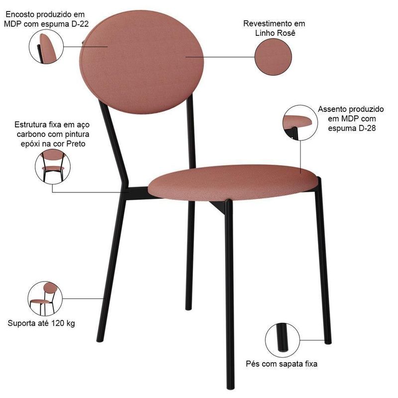 Cadeira Estofada Para Sala De Jantar Azuri Preto C01 Linho Rosê - Lyam DecorDesfrute de momentos inesquecíveis com a Cadeira Azuri, projetada para oferecer o máximo de conforto e elegância com seu encosto em formato de elipse. Com sua estrutura de aço, assento e encosto estofados com materiais de altíssima qualidade, ela proporciona suporte ideal para longas refeições e conversas agradáveis. Além de combinar durabilidade e estilo, ela é a escolha perfeita para quem busca sofisticação e bem-estar em cada detalhe. Transforme sua sala de jantar com a nossa Cadeira Azuri. Garanta já a sua!Dimensões da Cadeira (L x A x P) 43 x 86 x 53 cmAltura do chão ao assento: 49 cm Largura do encosto: 42 cm Altura do encosto: 26 cm Profundidade do assento: 42 cmCaracterísticas: Estrutura fixa em aço carbono com pintura epóxi na cor preto. Encosto produzido em MDP com espuma D-22. Assento produzido em MDP com espuma D-28. Revestimento em Linho Rosê. Pés com sapatas fixa. Peso suportado de até 120 kg.- Por se tratar de estofado as medidas podem ter uma pequena variação de até 3 cm. - A tonalidade do produto real poderá ter ligeira variação devido o lote de tecidos. - A limpeza deve ser feita com pano levemente umedecido em água limpa, sem esfregar, não utilizar produtos abrasivos, desengordurantes, álcool ou solvente.Observações importantes: - Produto para uso residencial em ambiente interno, não devendo ficar exposto diretamente ao sol, calor e umidade excessivos. - Pode haver alguma diferença de tonalidade entre a imagem e o produto real, por conta do tratamento de imagens e a calibração de cores do seu monitor. - As imagens são meramente ilustrativas, não acompanham objetos de decoração e eletrônicos. - Ao receber a mercadoria, o cliente deve verificar as condições da embalagem, caso haja alguma avaria não assine o comprovante de recebimento. - Montagem, desmontagem e outras instalações serão de responsabilidade do cliente. Não nos responsabilizamos, no ato da entrega, por subir escadas/elevadores ou pelo transporte por guincho em apartamentos. Eventuais despesas são de responsabilidade do comprador. - Confira as dimensões do produto e certifique-se de que passará normalmente por supostos elevadores, portas, escadas e/ou corredores de sua residência. Requer montagem: Não | Fabricante: Lyam Decor | Model: Azuri | OriginCountry: Brasil | OriginState: PR | SizeDescription: Altura: 86 cm x Largura: 43 cm x Profundidade: 53 cm | ProductLength: 53 cm | ProductWidth: 43 cm | ProductHeight: 86 cm | ProductWeight: 6 kg | Cor do assento: Rosa | É dobrável: Não | É empilhável: Não | Altura do assento a partir do solo: 49 cm | Peso máximo suportado: 120 kg | Tempo de montagem: na | Cor: Rosê | ProductContents: 01 Cadeira | ProductWarranty: 90 dias após o recebimento do produto | Desenho do tecido: Liso | Color: Rosa | ColorFamily: Rosa | ColorSimple: Rosa | ColorSupplier: Rosê | Cor do estofamento: Rosê | Material: Estrutura em Aço e MDP, Revestimento em Linho | MaterialFamily: Aço, MDP e Linho | SupplierSimpleName: Cadeira Estofada Para Sala de Jantar Azuri Preto C01 Linho Rosê - Lyam Decor | ProductInstructions: Produto para uso em ambiente interno, nao devendo ficar exposto ao sol, calor e umidade excessivos. | Cor da estrutura da cadeira: Preto | É cadeira de balanço: Não | Material do estofamento: MDP, Espuma D22D28 e Linho | Altura da cadeira: 86 cm | Profundidade da cadeira: 53 cm | Profundidade do assento: 42 cm | Largura do assento: NA | Firmeza: Firme | Largura da cadeira: 43 cm | Espessura do assento: na