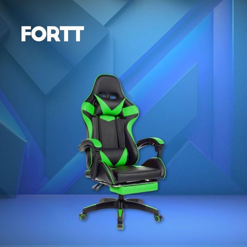 Cadeira Gamer Fortt Xiamen Verde - Cgf011-vrCadeira Gamer Fortt Xiamen Verde - CGF011-VRA cadeira ideal para qualquer tipo de ambienteSeja para trabalhar, estudar ou para seu lazer, a cadeira tornou-se um item essencial para o dia a dia. Agora ela não só é mais um item de decoração da casa ou de uso esporádico, como tornou-se ferramenta de trabalho ou estudo de uso continuo e diário.A nos mostrou que a cadeira passa a ser agora um item crucial para o desenvolvimento de atividades corporativas, pedagógica e entretenimento.Mais importante que ser um produto resistente, duradouro e que harmonize com seu ambiente, faz se necessário avaliar o conforto que essa cadeira pode proporcionar. Lembrando, passamos entre 8 a 10 horas sentados nessas mesmas cadeiras, todos os dias. É muito importante então avaliar bem a sua escolha, já que é provável que seja o que você passe a maior parte do seu dia durante a sua vida.Perfeita para vocêCom recursos como: ajuste de altura, assento e/ou encosto largo e confortável, a cadeira Fortt proporciona excelente conforto para qualquer biotipo corporal.Cadeira GiratóriaDiferente da cadeira com sua base fixa, a cadeira giratória permite que você gire 360 graus facilitando e trazendo velocidade ao seu deslocamento quando necessário, seja ao redor da mesa no seu ambiente de trabalho ou em sua residência.Limpeza e cuidadosHigiene e limpeza: esta é uma das principais vantagens das cadeiras de tela mesh, devido a facilidade de manter a limpeza em dia. Isso porque o tecido não sofre degradação por água, maresia e produtos de limpeza, por exemplo.RodinhasAs rodinhas das cadeiras FORTT proporcionam excelente proteção ao piso, evitando arranhões. Possuem uma resistência regular a impacto, e bom deslizamento trazendo eficácia e velocidade na sua locomoção.Especificações TecnicasLinha: XiamenModelo: CGF011-VRBase: PlásticoCor: VerdeCategoria: GamerEncosto reclinável: SimGraus de inclinação: 135 grausAjuste de altura: SimDensidade da espuma: 60kgs/m3Revestimento: Couro PUEstrutura: Aço com madeiraPeso suportado: 120kgGiratório: SimClasse de pistão: Classe 2Braço ajustável: NãoAcabamento do parafuso: SimCom apoio para os pés: SimTravesseiro para lombar e cabeça: SimTempo Médio para montagem: 30 MinutosMarca: ForttDimensõesAltura mínima: 124 cmAltura máxima: 132 cmProfundidade do assento: 50 cmLargura do assento: 50 cmAltura do chão ao assento (mínimo – máximo):42-50cmAltura do chão ao braço (mínimo – máximo): 62-72cmAltura do assento ao braço: 18cmEspessura do assento: 7cmDistância entre os braços: 63 cmAltura do encosto: 82cmLargura do encosto: 54cmPeso do produto: 15KgObservações:- Limpar com pano macio seco ou umedecido com água;- O tom da cor do produto pode variar de acordo com lote e/ou características do seu monitor ou tela;- Garantia legal de 90 dias para de fabricação;- Fotos Meramente ilustrativas. Linha: Xiamen | Modelo: CGF011-VR | Base: Plástico | Marca: Fortt | Categoria: Gamer | Encosto reclinável: Sim | Graus de inclinação: 135 graus | Ajuste de altura: Sim | Densidade da espuma: 60kgs/m3 | Revestimento: Couro PU | Estrutura: Aço com madeira | Peso suportado: 120kg | Travesseiro para lombar e cabeça: Sim