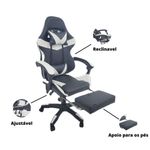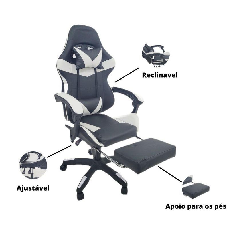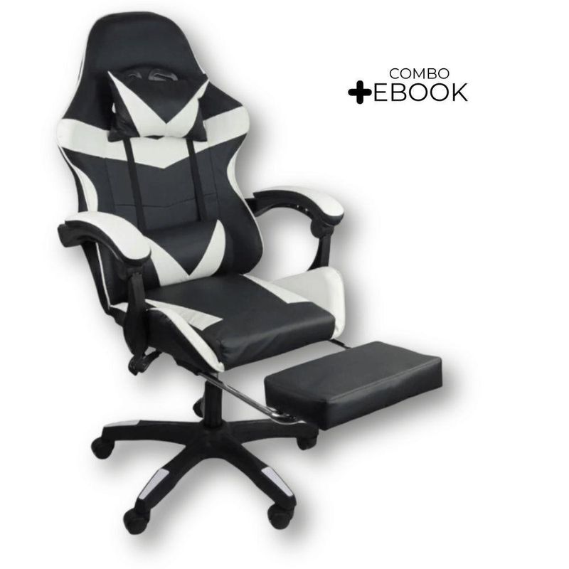 Cadeira Gamer Stillus Ergonômica Oficial Apoio De Pés Preta / BrancaCadeira Gamer Stillus Ergonômica com Apoio para os Pés – Conforto, Estilo e DesempenhoTransforme suas horas de jogo ou trabalho com a Cadeira Gamer Stillus, projetada para oferecer máximo conforto e ergonomia. Seu design moderno com apoio retrátil para os pés e encosto reclinável de até 120° garante o equilíbrio ideal entre produtividade e descanso.Feita com estrutura metálica reforçada e revestimento em couro sintético premium, a Stillus combina durabilidade, resistência e sofisticação. Ideal para gamers exigentes e profissionais que passam horas sentados e não abrem mão do conforto. Destaques que fazem a diferençaDesign ergonômico com encosto alto e apoio lombar;Apoio retrátil para os pés, perfeito para relaxar;Revestimento em couro sintético premium, fácil de limpar;Altura ajustável e base giratória 360°;Inclinação de até 120°, ideal para pausas e descanso;Capacidade de até 120 kg, com estrutura robusta. Acompanha: E-book Exclusivo. Medidas AproximadasAltura total: 110 – 120 cmAssento até o chão: 45 – 53 cmEncosto: 78 cm (altura) x 54 cm (largura)Assento: 52 cm (largura) x 53 cm (profundidade)Entre braços: 63 cmPeso: 17 kg Especificações TécnicasEstrutura: Metal e PolipropilenoRevestimento: Couro sintéticoAssento: Madeira multilaminadaInclinação: 120°Peso máximo suportado: 120 kgA Cadeira Gamer Stillus é o equilíbrio perfeito entre conforto, estilo e resistência.Ideal para quem busca alto desempenho e bem-estar em todas as horas do dia — do trabalho ao lazer.