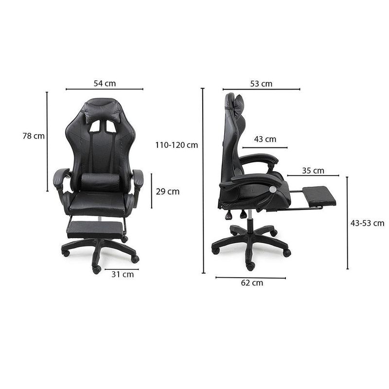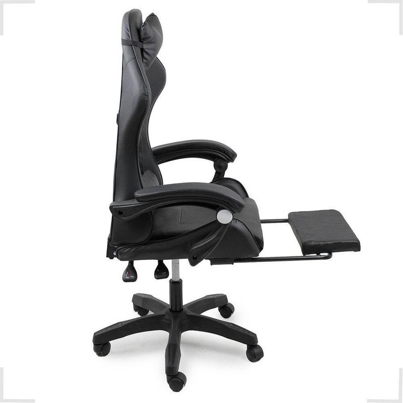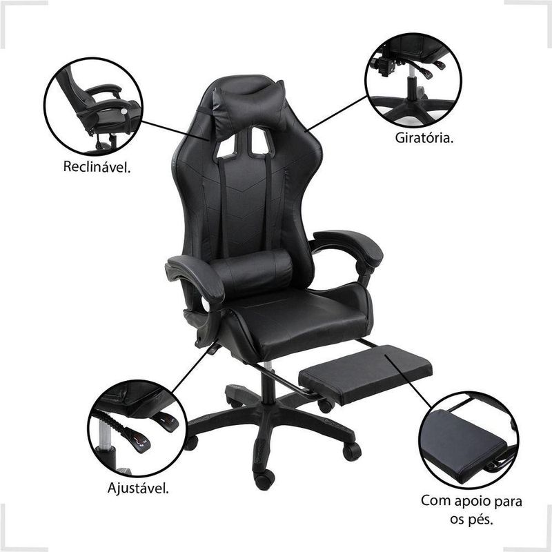 Cadeira Gamer Stillus Ergonômica Oficial Apoio De Pés PretoCadeira Gamer Stillus Ergonômica com Apoio para os Pés – Conforto, Estilo e DesempenhoTransforme suas horas de jogo ou trabalho com a Cadeira Gamer Stillus, projetada para oferecer máximo conforto e ergonomia. Seu design moderno com apoio retrátil para os pés e encosto reclinável de até 120° garante o equilíbrio ideal entre produtividade e descanso.Feita com estrutura metálica reforçada e revestimento em couro sintético premium, a Stillus combina durabilidade, resistência e sofisticação. Ideal para gamers exigentes e profissionais que passam horas sentados e não abrem mão do conforto. Destaques que fazem a diferençaDesign ergonômico com encosto alto e apoio lombar;Apoio retrátil para os pés, perfeito para relaxar;Revestimento em couro sintético premium, fácil de limpar;Altura ajustável e base giratória 360°;Inclinação de até 120°, ideal para pausas e descanso;Capacidade de até 120 kg, com estrutura robusta. Acompanha: E-book Exclusivo. Medidas AproximadasAltura total: 110 – 120 cmAssento até o chão: 45 – 53 cmEncosto: 78 cm (altura) x 54 cm (largura)Assento: 52 cm (largura) x 53 cm (profundidade)Entre braços: 63 cmPeso: 17 kg Especificações TécnicasEstrutura: Metal e PolipropilenoRevestimento: Couro sintéticoAssento: Madeira multilaminadaInclinação: 120°Peso máximo suportado: 120 kgA Cadeira Gamer Stillus é o equilíbrio perfeito entre conforto, estilo e resistência.Ideal para quem busca alto desempenho e bem-estar em todas as horas do dia — do trabalho ao lazer.