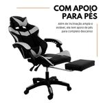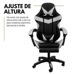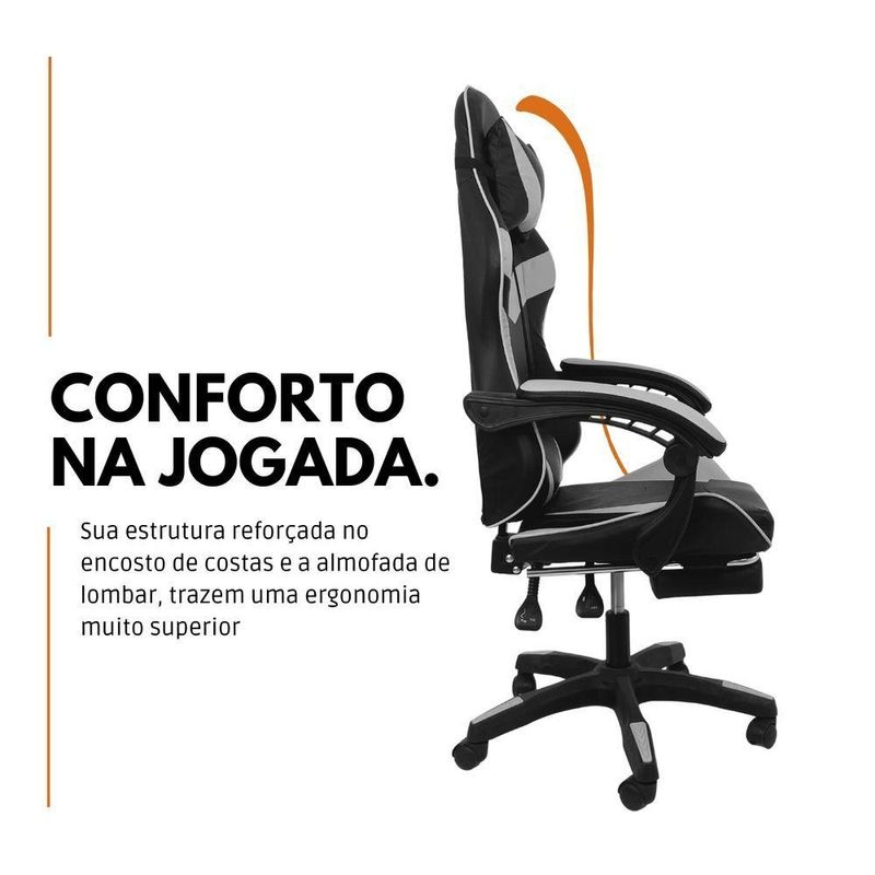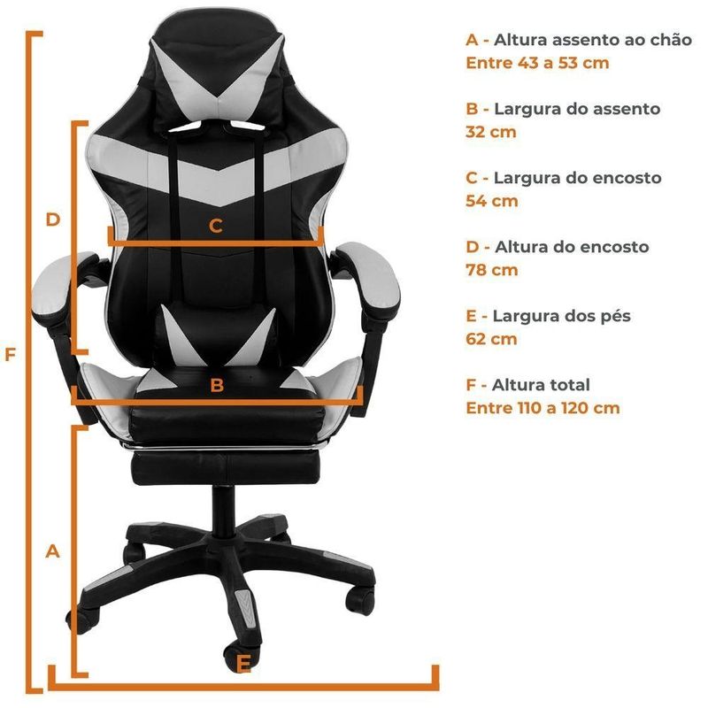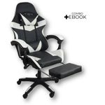 Cadeira Gamer Stillus Oficial Apoio Pés Preto/brancoCadeira Gamer Stillus Ergonômica com Apoio para os Pés – Conforto, Estilo e DesempenhoTransforme suas horas de jogo ou trabalho com a Cadeira Gamer Stillus, projetada para oferecer máximo conforto e ergonomia. Seu design moderno com apoio retrátil para os pés e encosto reclinável de até 120° garante o equilíbrio ideal entre produtividade e descanso.Feita com estrutura metálica reforçada e revestimento em couro sintético premium, a Stillus combina durabilidade, resistência e sofisticação. Ideal para gamers exigentes e profissionais que passam horas sentados e não abrem mão do conforto. Destaques que fazem a diferençaDesign ergonômico com encosto alto e apoio lombar;Apoio retrátil para os pés, perfeito para relaxar;Revestimento em couro sintético premium, fácil de limpar;Altura ajustável e base giratória 360°;Inclinação de até 120°, ideal para pausas e descanso;Capacidade de até 120 kg, com estrutura robusta. Acompanha: E-book Exclusivo. Medidas AproximadasAltura total: 110 – 120 cmAssento até o chão: 45 – 53 cmEncosto: 78 cm (altura) x 54 cm (largura)Assento: 52 cm (largura) x 53 cm (profundidade)Entre braços: 63 cmPeso: 17 kg Especificações TécnicasEstrutura: Metal e PolipropilenoRevestimento: Couro sintéticoAssento: Madeira multilaminadaInclinação: 120°Peso máximo suportado: 120 kgA Cadeira Gamer Stillus é o equilíbrio perfeito entre conforto, estilo e resistência.Ideal para quem busca alto desempenho e bem-estar em todas as horas do dia — do trabalho ao lazer.
