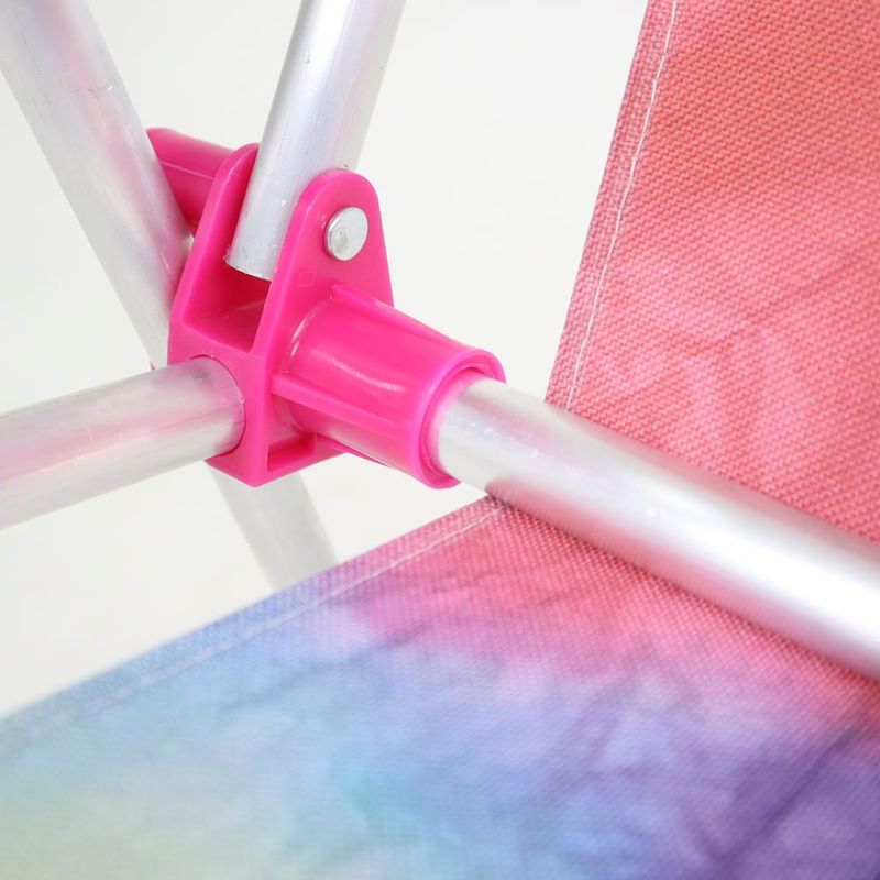 A cadeira infantil Bel vai encantar a criançada! É ideal para usar em casa, na praia, parque, piscina ou camping.Leve para onde quiser! Informações: · Tela em Oxford (tecido reforçado 100% Poliéster dublado com PVC)· Estrutura em Alumínio· Apoios de braço coloridos em Polipropileno· Dobrável· Estampa exclusiva Tie-Dye· Super leve e fácil de transportar! · Produto nacional fabricado no Brasil de qualidade e conforto sem igual.Especificações técnicasPeso Suportado da Cadeira: 30 KgMedidas da Cadeira: 39 cm x 41,5 cm x 49,5 cmAltura do Assento: 25 cmReclinável: SimEstrutura: AlumínioApoio para os Braços: SimDobrável: SimCor: MulticolorGarantia: 3 MesesMaterial:Oxford, Alumínio e Polipropileno