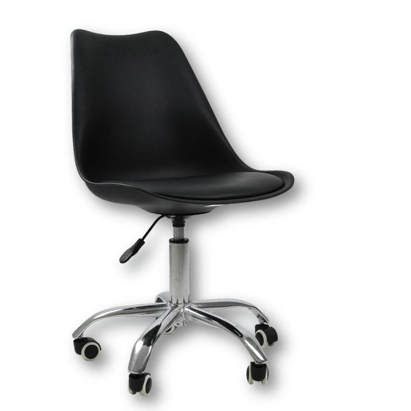 Cadeira Office Base Cromada Com Rodízio Giratória Saarinen Preto 1Cadeira Office Saarinen Base Cromada com Rodízios – Conforto, Design Moderno e VersatilidadeA Cadeira Office Saarinen Base Cromada com Rodízio Giratório é ideal para quem busca um móvel que una estilo, conforto e funcionalidade. Seu design contemporâneo se adapta perfeitamente a diversos ambientes, como escritório, home office, sala de jantar ou quarto, garantindo elegância e praticidade no dia a dia.Medidas do Produto:Altura Total: 83 a 96 cmAltura do Assento ao Chão: 47 a 60 cmAltura do Encosto: 48 cmLargura:- Pernas: 30 cm- Assento: 48 cm- Encosto: 48 cmComprimento:- Encosto: 2 cm- Assento: 41 cmPeso: 6 kgPeso Máximo Suportado: 120 kgMateriais- Revestimento em couro sintético (PU), resistente e fácil de limpar- Assento em madeira multilaminada, oferecendo firmeza e durabilidade- Base cromada com rodízios, garantindo mobilidade e estabilidadeDiferencialAcompanha E-book exclusivo!