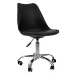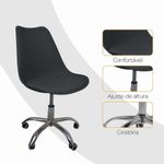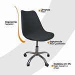 Cadeira Office Com Rodízio Giratória Saarinen PretoCadeira Office Saarinen Base Cromada com Rodízios – Conforto, Design Moderno e VersatilidadeA Cadeira Office Saarinen Base Cromada com Rodízio Giratório é ideal para quem busca um móvel que una estilo, conforto e funcionalidade. Seu design contemporâneo se adapta perfeitamente a diversos ambientes, como escritório, home office, sala de jantar ou quarto, garantindo elegância e praticidade no dia a dia.Medidas do Produto:Altura Total: 83 a 96 cmAltura do Assento ao Chão: 47 a 60 cmAltura do Encosto: 48 cmLargura:- Pernas: 30 cm- Assento: 48 cm- Encosto: 48 cmComprimento:- Encosto: 2 cm- Assento: 41 cmPeso: 6 kgPeso Máximo Suportado: 120 kgMateriais- Revestimento em couro sintético (PU), resistente e fácil de limpar- Assento em madeira multilaminada, oferecendo firmeza e durabilidade- Base cromada com rodízios, garantindo mobilidade e estabilidadeDiferencialAcompanha E-book exclusivo!