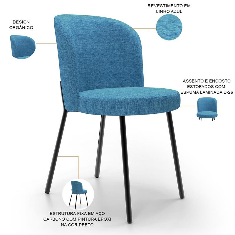 A Cadeira Estofada Gavi é perfeita para quem busca elegância e conforto para a sala de jantar ou cozinha. Com design contemporâneo, essa cadeira estilo industrial se destaca não somente por ser uma peça de mobiliário versátil, já que pode ser aproveitada na cozinha, sala de jantar, área gourmet e até mesmo salão de festas; como também recebe atenção pelo conforto que oferece, graças ao assento e encosto revestidos com espuma laminada D-26, de modo que você desfrute de momentos incríveis durante as refeições. Já os pés em aço carbono conferem resistência e durabilidade, garantindo que você desfrute dessa cadeira por muito tempo. Em outras palavras, a Cadeira para Sala de Jantar Cozinha Estofada Gavi é a escolha perfeita para quem valoriza o estilo e o conforto em seus momentos especiais à mesa. Aproveite e garanta já a sua! Dimensões do produto (L x A x P) 44 x 80 x 53 cm Medidas Internas: Altura do chão ao assento: 46 cm Diâmetro do acento:42 cm Altura do Encosto: 41 cm Largura do Encosto: 45cm. Características: Estrutura fixa em Aço Carbono com pintura epóxi na cor Preta. Revestimento de alta qualidade Linho na cor Azul. Assento e encosto com espuma laminada D-26. Suporta até 120 kg. Produto entregue montado. - Por se tratar de estofado as medidas podem ter uma pequena variação de até 3 cm. - A tonalidade do produto real poderá ter ligeira variação devido o lote de tecidos. - A limpeza deve ser feita com pano umedecido em água limpa, sem esfregar, não utilizar produtos abrasivos, desengordurantes, álcool ou solvente. Observações importantes: - Produto para uso residencial em ambiente interno, não devendo ficar exposto diretamente ao sol, calor e umidade excessivos. - Pode haver alguma diferença de tonalidade entre a imagem e o produto real, por conta do tratamento de imagens e a calibração de cores do seu monitor. - As imagens são meramente ilustrativas, não acompanham objetos de decoração e eletrônicos. - Ao receber a mercadoria, o cliente deve verificar as condições da embalagem, caso haja alguma avaria não assine o comprovante de recebimento. - Montagem, desmontagem e outras instalações serão de responsabilidade do cliente. Não nos responsabilizamos, no ato da entrega, por subir escadas/elevadores ou pelo transporte por guincho em apartamentos. Eventuais despesas são de responsabilidade do comprador. - Confira as dimensões do produto e certifique-se de que passará normalmente por supostos elevadores, portas, escadas e/ou corredores de sua residência.