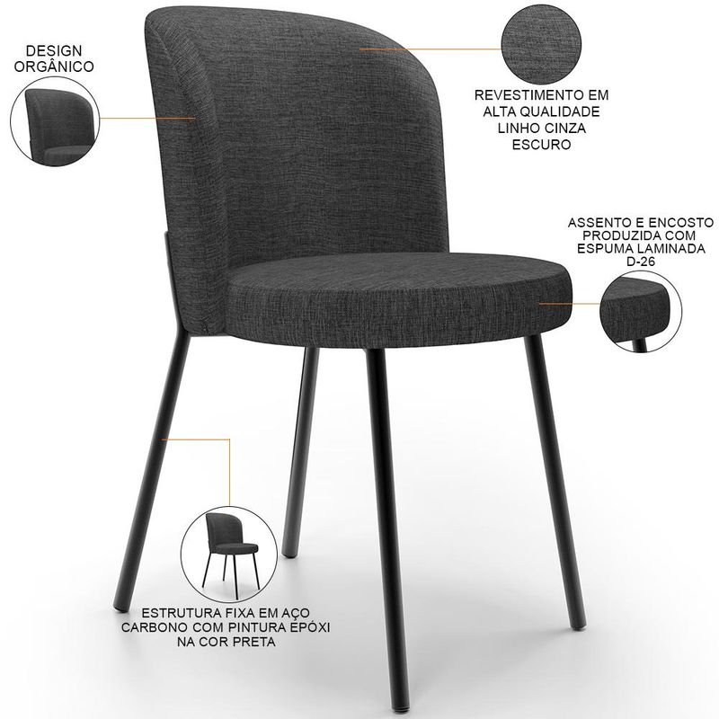 A Cadeira Estofada Gavi é perfeita para quem busca elegância e conforto para a sala de jantar ou cozinha. Com design contemporâneo, essa cadeira estilo industrial se destaca não somente por ser uma peça de mobiliário versátil, já que pode ser aproveitada na cozinha, sala de jantar, área gourmet e até mesmo salão de festas; como também recebe atenção pelo conforto que oferece, graças ao assento e encosto revestidos com espuma laminada D-26, de modo que você desfrute de momentos incríveis durante as refeições. Já os pés em aço carbono conferem resistência e durabilidade, garantindo que você desfrute dessa cadeira por muito tempo. Em outras palavras, a Cadeira para Sala de Jantar Cozinha Estofada Gavi é a escolha perfeita para quem valoriza o estilo e o conforto em seus momentos especiais à mesa. Aproveite e garanta já a sua! Dimensões do produto (L x A x P) 44 x 80 x 53 cm Medidas Internas: Altura do chão ao assento: 48 cm Características: Estrutura fixa em Aço Carbono com pintura epóxi na cor Preta. Revestimento de alta qualidade Linho na cor Cinza Escuro. Assento e encosto com espuma laminada D-26. Suporta até 120 kg. Produto entregue montado. - Por se tratar de estofado as medidas podem ter uma pequena variação de até 3 cm. - A tonalidade do produto real poderá ter ligeira variação devido o lote de tecidos. - A limpeza deve ser feita com pano umedecido em água limpa, sem esfregar, não utilizar produtos abrasivos, desengordurantes, álcool ou solvente. Observações importantes: - Produto para uso residencial em ambiente interno, não devendo ficar exposto diretamente ao sol, calor e umidade excessivos. - Pode haver alguma diferença de tonalidade entre a imagem e o produto real, por conta do tratamento de imagens e a calibração de cores do seu monitor. - As imagens são meramente ilustrativas, não acompanham objetos de decoração e eletrônicos. - Ao receber a mercadoria, o cliente deve verificar as condições da embalagem, caso haja alguma avaria não assine o comprovante de recebimento. - Montagem, desmontagem e outras instalações serão de responsabilidade do cliente. Não nos responsabilizamos, no ato da entrega, por subir escadas/elevadores ou pelo transporte por guincho em apartamentos. Eventuais despesas são de responsabilidade do comprador. - Confira as dimensões do produto e certifique-se de que passará normalmente por supostos elevadores, portas, escadas e/ou corredores de sua residência.