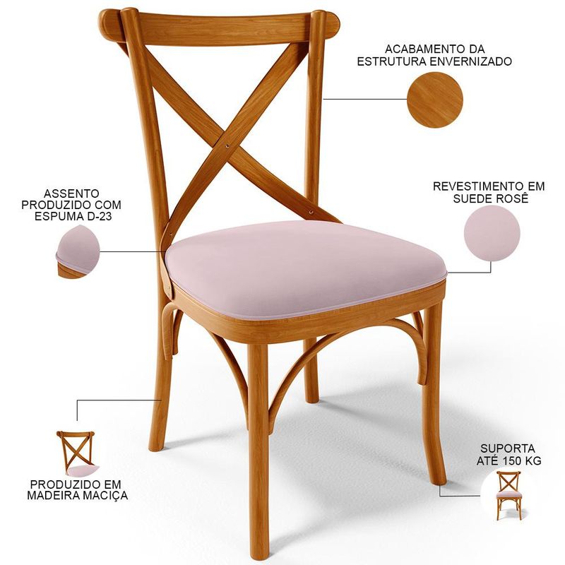 Inspirada no elegante mobiliário parisiense do século 19 e pensada para proporcionar máximo conforto, a Cadeira Ávila combina estilo e funcionalidade de uma maneira única. Estruturada em madeira maciça, possui detalhes curvilíneos que trazem suavidade e delicadeza a peça, seu acabamento envernizado a torna um mobiliário de destaque e trás durabilidade e confiança ao seu uso. Possui assento estofado, que proporciona ao seu usuário a sensação de comodidade ideal e ainda adiciona classe a qualquer ambiente. Seu design a torna uma peça versátil que abre portas a sua imaginação pois pode ser disposta em salas de jantar, estar, e espera, quartos, halls de entrada e cozinhas. Expresse seu bom gosto, e adquira já essa obra-prima da sofisticação! Dimensões do Produto (L x A x P) 49,5 x 86,5 x 55 cm Medidas Internas: Largura do assento: 44,5 cm Profundidade do assento: 43 cm Altura do encosto ao assento: 40 cm Largura total do encosto: 49,5 cm Altura do chão ao assento: 50 cm Largura do encosto: 38 cm Características: Estrutura em Madeira Maciça, com acabamento envernizado. Assento estofado com espuma D-23. Revestimento em Suede na cor Rosê, de ótima qualidade. Peso suportado de até 150 kg. - Produto entregue montado. - Por se tratar de estofado as medidas podem ter uma pequena variação de até 3 cm. - A tonalidade do produto real poderá ter ligeira variação devido o lote de tecidos. - A limpeza deve ser feita com pano levemente umedecido em água limpa, sem esfregar, não utilizar produtos abrasivos, desengordurantes, álcool ou solvente. Observações importantes: - Produto para uso residencial em ambiente interno, não devendo ficar exposto diretamente ao sol, calor e umidade excessivos. - Pode haver alguma diferença de tonalidade entre a imagem e o produto real, por conta do tratamento de imagens e a calibração de cores do seu monitor. - As imagens são meramente ilustrativas, não acompanham objetos de decoração e eletrônicos. - Ao receber a mercadoria, o cliente deve verificar as condições da embalagem, caso haja alguma avaria não assine o comprovante de recebimento. - Montagem, desmontagem e outras instalações serão de responsabilidade do cliente. Não nos responsabilizamos, no ato da entrega, por subir escadas/elevadores ou pelo transporte por guincho em apartamentos. Eventuais despesas são de responsabilidade do comprador. - Confira as dimensões do produto e certifique-se de que passará normalmente por supostos elevadores, portas, escadas e/ou corredores de sua residência.