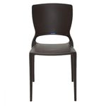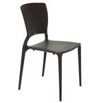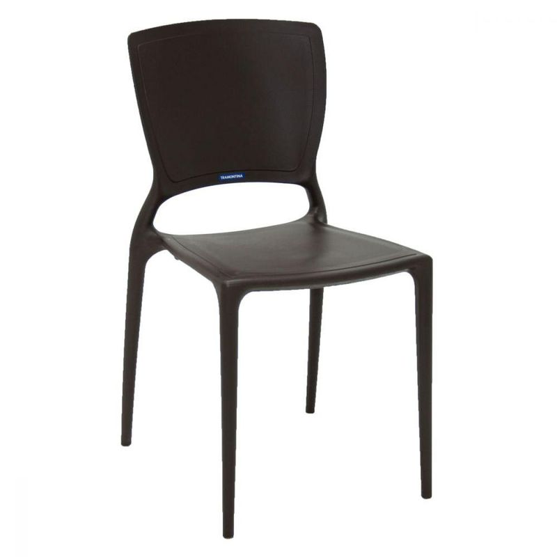 Cadeira Tramontina Marrom Com Encosto Em Polipropileno A Cadeira Tramontina Sofia Marrom sem Braços com Encosto Fechado em Polipropileno e Fibra de Vidro da linha Summa trará uma proposta diferente para qualquer ambiente, pois é robusta, bonita e moderna, tornando-se o grande destaque. Uma peça ideal para uso interno, seja na sua casa ou escritório. São cinco modelos dela: Sofia encosto fechado, Sofia encosto vazado vertical, Sofia encosto vazado horizontal, Sofia com braço e encosto vazado horizontal, e por fim, Sofia com braço e encosto fechado. Para garantir durabilidade e evitar acidentes, não suba no assento, evite jogar-se sobre a cadeira ou apoiar-se somente nas pernas traseiras. Além de evitar longa exposição ao sol. Ela é resistente a uma carga estática de até 182 kg, sendo certificada pelo Inmetro.Especificações TécnicasLinha ou Coleção : SofiaComprimento : 45,5 CmLargura : 53 CmAltura : 82,5 CmMaterial : PolipropilenoMaterial das Pernas : PolipropilenoCor : MarromAcabamento : FoscoAltura do chão até o assento : 45,5 CmSuporta até (kg) : 182 KgEmpilhável : SimBraço : NãoTipo de Assento : FixoAntiderrapante : SimNecessita Montagem : NãoInformações Gerais : Feito em polipropileno+ fibra de vidroRecomendações de Uso : Para limpeza aconselha-se apenas um pano umedecido com águaCômodo Indicado : CozinhasPeso : 3,60 KgCertificado : Produto certificado de acordo com a Portaria do Inmetro nº 342/2014Marca : Tramontina Referência: 92236109