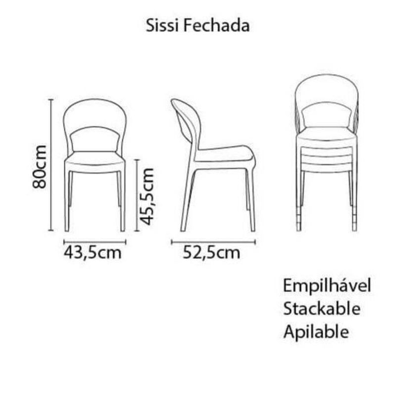 Cadeira Tramontina Sissi Encosto Fechado BrancoCom a Cadeira Tramontina Sissi Branca sem Braços com Encosto Fechado em Polipropileno e Fibra de Vidro da linha Summa você poderá deixar o seu ambiente moderno, clean e belo. A escolha perfeita para garantir durabilidade e conforto para o uso diário. Seu encosto fechado proporciona robustez, mas sem esconder toda a sutileza das suas linhas. Com ela a sua decoração fica surpreendente e convidativa. A Sissi é uma cadeira monobloco, empilhável, leve e resistente, sendo produzida com tecnologia de ponta de alta qualidade.Recomendações de Uso:- Aconselha-se a limpar a cadeira com pano macio e umedecido apenas com água.Informações Adicionais:* Produto certificado de acordo com a Portaria do Inmetro nº342/2014.Suporta uma carga estática de 182 kg.- Cadeira Tramontina Sissi Branca sem Braços com Encosto Fechado em Polipropileno e Fibra de Vidro- Imagem meramente ilustrava.