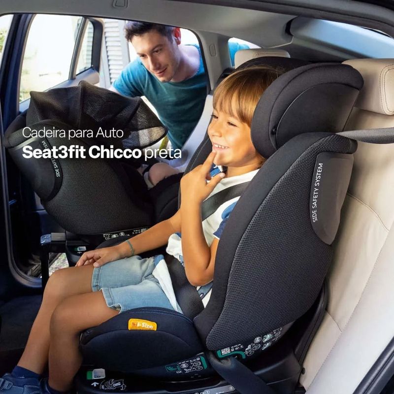 Cadeirinha para carro Seat3fit Chicco pretaProteção máxima que acompanha o crescimento da criançaA cadeirinha para todos os momentosProjetada para crianças de 40 a 125 cm ou do nascimento aos 7 anos, a Cadeirinha infantil para carro Seat3Fit cresce junto com a criança. Oferece mais segurança e conforto em todas as fases, proporcionando viagens e passeios tranquilos.Fácil instalação em todas as fasesPara crianças de 40 a 105 cm: do nascimento até 4 anosA instalação deve ser feita no sentido contrário ao da marcha, usando os conectores Isofix, a perna de suporte e o arnês integrado de 5 pontos para mais estabilidade e segurança. A partir dos 15 meses, a cadeirinha pode ser instalada de frente.Para crianças de 100 a 125 cm: de 4 a 7 anosA instalação é feita usando os conectores Isofix e o cinto de 3 pontos do veículo. Em carros sem Isofix, basta usar o cinto de 3 pontos. Para as crianças maiores ficarem mais confortáveis, a perna de suporte da cadeirinha pode ser dobrada.Segurança garantidaA Seat3Fit vem com sistema Isofix e perna de suporte, que vai da base da cadeirinha até o chão do carro, ideal para crianças até 105 cm (cerca de 4 anos). Inclui também o Side Safety System, uma proteção lateral integrada. Tudo pensado para manter o seu bebê seguro.Recursos inovadores e práticosSistema de embarque fácil: equipada com sistema de rotação 360º, que facilita tirar e colocar a criança da cadeirinha em qualquer posição.Sistema de reclinação: possui seis posições de recline, sendo duas ajustáveis quando virada para trás e quatro para frente. Assim, o bebê pode relaxar e interagir com toda tranquilidade.Mais confortoRedutor acolchoado: oferece um toque suave e uma postura mais saudável para o bebê.Tecido com tecnologia 3D Air Mesh: malha especial que melhora a circulação de ar em comparação com os tecidos tradicionais. Acompanha capota para proteção contra a luz solar e maior comodidade.Imagens meramente ilustrativas Informações importantesO que são produtos Remanufaturados?São produtos originais, restaurados por um profissional na própria fábrica e, por isso mesmo, estão em perfeito funcionamento. A vantagem desses produtos são os preços mais baixos e a segurança na compra, já que são cobertos por garantia de 90 dias contra defeitos.