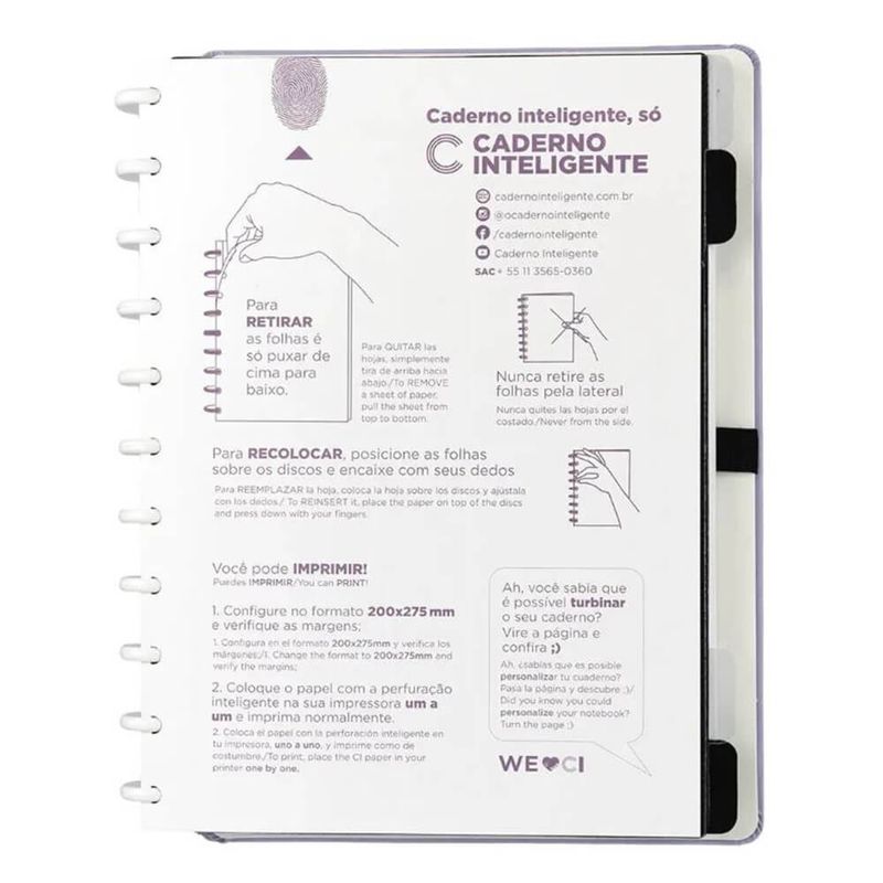 Caderno Inteligente Lilás Pastel Grande (CIGD4080)Um toque de elegância e suavidade: essa é a definição perfeita do nosso Caderno Lilás Pastel!Esse estilo contemporâneo e inspirador é ideal para quem quer se organizar com criatividade, pois o Caderno Inteligente dá grande liberdade para separar as atividades e atribuições.Criado para se adaptar perfeitamente a todas as suas necessidades, em cores lindas e modernas, estampas atuais e cheias de personalidade, esse caderno já vem prontinho para o uso, mas você pode escolher novos discos e elásticos e adicionar suas folhas e refis favoritos para criar um caderno totalmente do seu jeito. Detalhes: - Tamanho: Grande - Dimensões: 215 x 280 mm - Capa e contracapa rígidas- 01 folha de adesivos- 01 bolsa plástica- 01 folha de instruções de uso e manuseio- 01 folha de identificação com calendário no verso- 04 divisórias com abas para identificação- 80 folhas offset 90g (60 folhas pautadas e 20 folhas lisas brancas para você imprimir e voltar ao Caderno Inteligente)- 01 suporte com elástico para 01 caneta ou 01 lápis - 11 discos - 01 elástico colorido. Embalagem com 01 UnidadeImagens meramente ilustrativas, as cores podem variar em cada tela ou monitor.