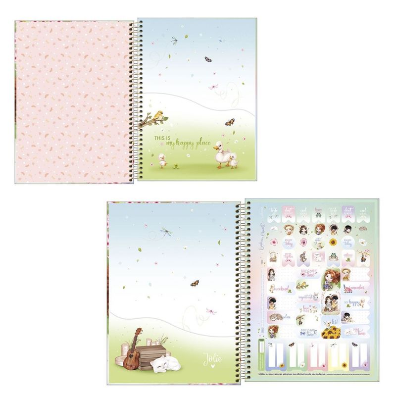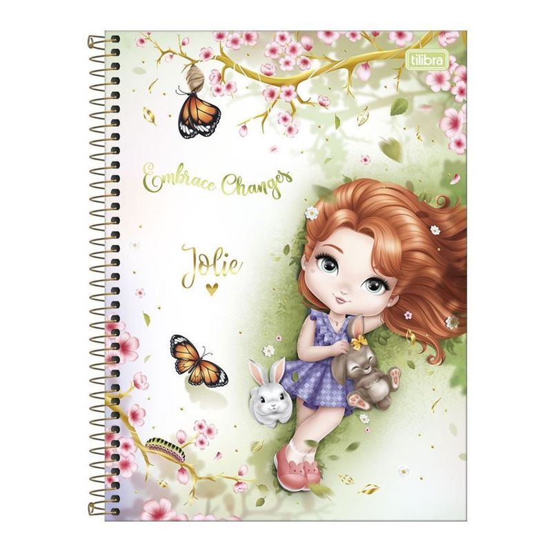 O Caderno Espiral Capa Dura Universitário 1 Matéria Jolie 80 Folhas possui capa dura com detalhe metalizado, parte interna decorada, bolsa de papel decorada para guardar trabalhos e anotações, folha com adesivos funcionais, folhas pautadas decoradas e espiral colorido. As meninas da turma Jolie estão mais lindas do que nunca nesta linha com estampas delicadas, cheias de fofura e muito romantismo! - Marca: Tilibra - Modelo: Caderno Universitário - Referência: 308536 - Contém 01 unidade - Espiral - 80 folhas - Folhas pautadas - Gramatura: 56g/m² - Dimensões: 20 x 27,5cm (LxC)
