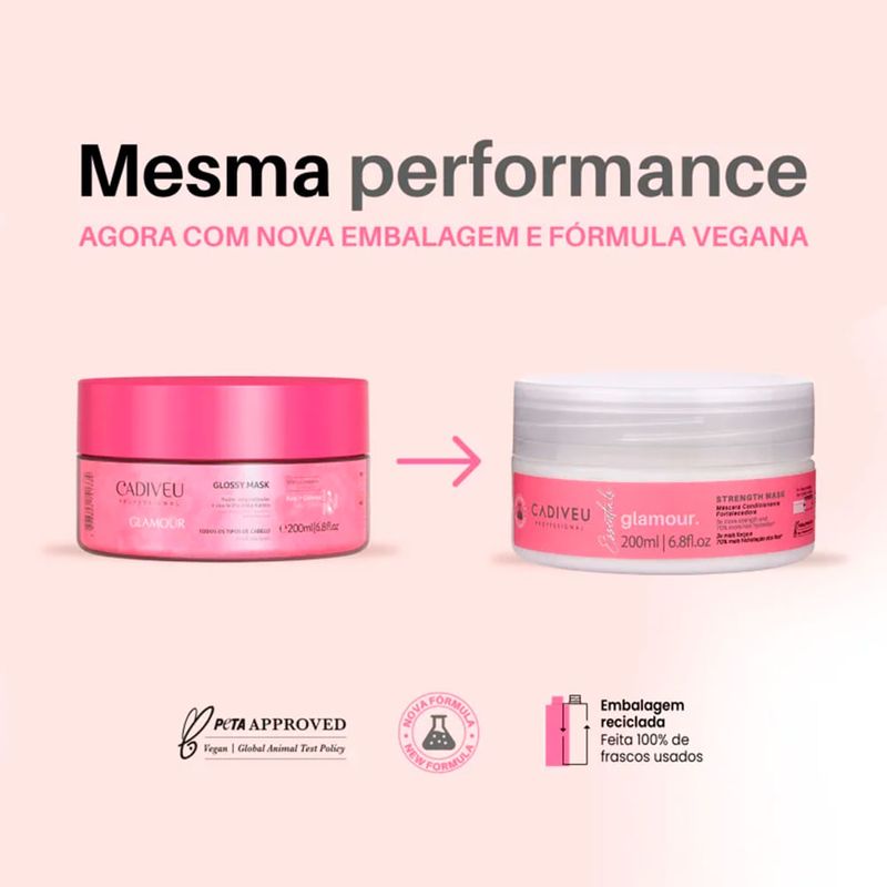 A Cadiveu Professional Essentials Glamour Máscara Condicionante 200ml é um tratamento intensivo para cabelos enfraquecidos e desidratados, ideal para todos os tipos de cabelo, incluindo lisos, alisados, cacheados, crespos ou ondulados. Enriquecida com biotina e extrato de quinoa, sua fórmula vegana fortalece os fios em até 3 vezes, promovendo hidratação profunda e brilho intenso. Com a tecnologia Hydra Force, transforma cabelos quebradiços em fios macios, saudáveis e revitalizados, ajudando na manutenção da saúde capilar e na redução da queda por quebra. É perfeita para quem busca um cuidado poderoso e sustentável. Características: Marca: Cadiveu Professional Linha: Essentials Glamour Categoria: Máscara Condicionante Benefícios: Fortalecimento, hidratação, brilho Ingredientes Principais: Biotina, Extrato de Quinoa Modo de Aplicação: Após lavar os cabelos com shampoo, aplique no comprimento e pontas, massageie suavemente, deixe agir por 3 minutos e enxágue. Especificações do Produto: Gênero: Unissex Ocasião: Uso semanal ou conforme necessidade Volume: 200ml Para Que Tipo de Cabelo: Todos os tipos, especialmente enfraquecidos e desidratados É Vegano: Sim Livre de: Petrolatos, parabenos, corantes, testes em animais (Cruelty Free) Benefícios do Produto: Eficácia: Fios 3x mais fortes e 70% mais hidratados, com reparação instantânea desde o primeiro uso. Durabilidade: Mantém hidratação e brilho ao longo do dia, com resultados progressivos. Versatilidade: Adapta-se a diferentes texturas capilares, oferecendo força e suavidade. Design ou Praticidade: Embalagem reciclada de 200ml, fácil de aplicar e ideal para rotina de cuidados. A Cadiveu Professional Essentials Glamour Máscara Condicionante 200ml é a escolha ideal para quem deseja cabelos fortes, hidratados e brilhantes sem comprometer a sustentabilidade. Com uma fórmula vegana e tecnologia avançada, proporciona um tratamento completo que revitaliza os fios, sendo perfeita para uso em casa ou como complemento a cuidados profissionais.