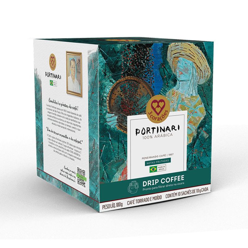 Portinari, um renomado pintor brasileiro, foi inspirado pelo café e criou 257 obras retratando a vida em um cafezal. Agora, a marca 3 Corações se inspirou nele para criar uma linha de cafés 100% Arábica. A embalagem apresenta a pintura "Peneirando Café", enquanto o café em si é cultivado na região cafeeira onde Portinari nasceu. Essa variedade de café possui notas frutadas, caramelo, mel e chocolate, além de um aroma adocicado, corpo licoroso e finalização doce. A 3 Corações oferece o Drip coffee, uma opção prática e fresca de café individualmente dosado, pronto para ser filtrado diretamente na xícara, utilizando tecnologia japonesa e moinho italiano para manter o sabor e aroma preservados.