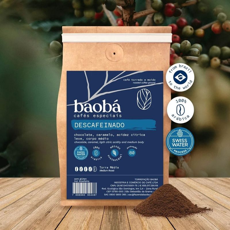 O Descafeinado Baobá é obtido através do método Swiss Water®, que remove a cafeína das sementes de café ainda cruas utilizando água, se tornando um processo menos agressivo ao meio ambiente e à nossa saúde. Com o nosso café especial descafeinado você pode abrir mão da cafeína sem abrir mão da qualidade da bebida, que possui sensorial de chocolate, caramelo, acidez cítrica e corpo médio. Sobre a Fazenda Baobá: A Fazenda Baobá nasceu em 2005, em São Sebastião da Grama, uma excelente região cafeeira do Brasil. Nossos pés são cultivados em até 1.400m de altura, fornecendo maior riqueza de sabores e aromas. Uma região de solo rico e características climáticas que favorecem o plantio do café arábica. Porque café bom vem lá do alto.