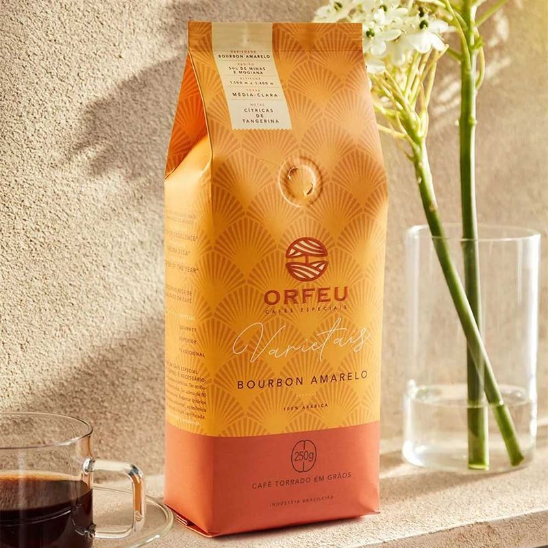 Orfeu Bourbon Amarelo é um café de torra média-clara produzido com grãos 100% Arábica da variedade Bourbon Amarelo. Na xícara, apresenta corpo suave, acidez marcante e notas cítricas. Ideal para quem busca uma bebida aromática, a linha de Orfeu traz uma variedade clássica, cultivada em grande altitude na premiada Fazenda Rainha, no Vale da Grama, na região da Mogiana (SP). Sobre Orfeu: a marca surgiu no mercado de Cafés Especiais em 2005, cultivando grãos de qualidade selecionada nas altas montanhas sul mineiras da Fazenda Sertãozinho, local com tradição de mais de 67 anos em lavouras de café. A torrefação foi idealizada e construída na própria fazenda, para completar o ciclo de produção e entregar diretamente aos clientes um produto de alta qualidade e com grande frescor. A unidade de produção é climatizada e conta com equipamentos de última geração para garantir maior qualidade final do produto durante o processo de torrefação, embalagem e expedição.