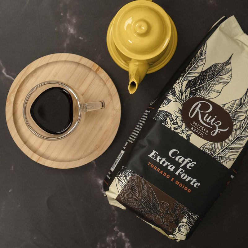 Café Ruiz Extra Forte - Torrado e Moído 500g O café Extra Forte é produzido com grãos selecionados que acentuam o sabor, aroma marcante e mais encorpado da marca Ruiz Coffees. Esta opção é ideal para dias que você precisa de alto poder da cafeína e motivação para o seu dia a dia. A sua paixão por café também é a nossa Há 90 anos, cultivamos nas fazendas da nossa família a tradição dos melhores aromas, desde o plantio à colheita, e agora até a embalagem. Somos um dos maiores produtores do mundo e mantemos o controle de cada etapa, garantindo uma seleção rigorosa dos grãos para que você tenha sempre o café mais saboroso na sua xícara. Modo de preparo Para apreciação de todas as particularidades desta bebida, neste preparo o pó de café deve ser acondicionado em um filtro de café. Coloque de 4 a 5 colheres bem cheias de café. Utilize água mineral ou filtrada. Ao primeiro sinal de fervura, despeje a água em movimentos circulares sobre o pó de café no coador, gerando uma bebida aromática. Adoce a gosto. Conservação Para manter todas as características do seu café, após cada uso feche a embalagem com cuidado e coloque-a em local fresco e arejado. Ingredientes Café extra forte torrado e moído. Não contém glúten.