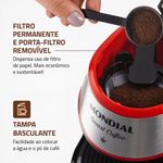 Descubra a praticidade e o charme da Cafeteira 2 Xícaras Smart Coffee C-42-2X-BI da Mondial, ideal para quem ama café fresquinho e quer mais agilidade no dia a dia. Com capacidade para preparar duas xícaras simultaneamente, ela entrega sabor e eficiência na medida certa.Design moderno e acabamento em inox fazem da C-42-2X-BI uma peça elegante para qualquer cozinha. Seu estilo compacto e sofisticado combina com ambientes contemporâneos e valoriza o espaço com funcionalidade e beleza.Filtro permanente com porta-filtro removível dispensa o uso de filtros de papel, promovendo economia e sustentabilidade. A limpeza também é facilitada com a tampa basculante e a bandeja antiderrapante removível, garantindo praticidade no dia a dia.Acompanha 2 xícaras de porcelana de 120ml cada e 1 colher dosadora, perfeitas para servir aquele café especial com estilo e precisão. Ideal para compartilhar momentos ou aproveitar sozinho com muito sabor.Indicador luminoso de liga/desliga mostra o funcionamento do produto com clareza, enquanto a base removível facilita a remoção de resíduos e a higienização completa.Qualidade garantida pela Mondial, marca reconhecida por milhões de consumidores. Com 1 ano de garantia, você tem segurança e confiança em cada preparo. Mondial, a escolha inteligente para quem ama café!