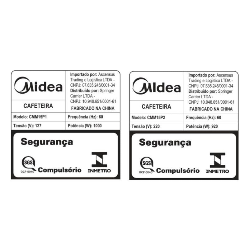 Cafeteira Elétrica Preta 1,5L Midea CMM15P2 220VA Cafeteira Mecânica Midea 1,5 litros é ideal para preparar grandes quantidades de café, servindo até 37 xícaras.Seu indicador do nível de água permite uma visão clara da quantidade de água utilizada, enquanto sua função Manter Aquecido preserva o café na temperatura ideal por muito mais tempo.Além disso, possui o Sistema Corta Pingo, que interrompe o fluxo de café ao retirar a jarra, evitando desperdício e mantendo a cafeteira limpa.Ela também vem com um filtro reutilizável, que dispensa o uso de filtro de papel.Observação: Somente faturamos para o nosso consumidor final, ou seja, não faturamos pedidos para CNPJ por este portal de vendas;Características TécnicasMarca: MideaCódigo do Produto: CMM15P1.CMM15P2Voltagem: 220VCor: PretoCapacidade líquida interna: 1,5LNº de xícaras: 37Xícara de: 40mlProduto conectado: NãoDesligamento automático: NãoProgramável: NãoFunção Manter Aquecido: SimIndicação do nível de água: SimPainel: MecânicoPorta-filtro: Sim RemovívelPortátil: SimMaterial externo: Vidro / Plástico / InoxCor externa: PretoPotência Nominal (W): 4,18Corrente Nominal (A): 7,87Comprimento: 28,0 cmLargura: 18,6 cmAltura: 35,0 cmProfundidade: 28,0 cmPeso: 1,84 kgAltura Embalada: 36,5 cmComprimento Embalado: 28,6 cmLargura Embalada: 21,6 cmProfundidade Embalada: 28,6 cmPeso Embalado: 2,37 kgItens Inclusos: Cafeteira Mecânica Midea, Manual de usuárioGarantia do Produto: 12 meses (1 ano)
