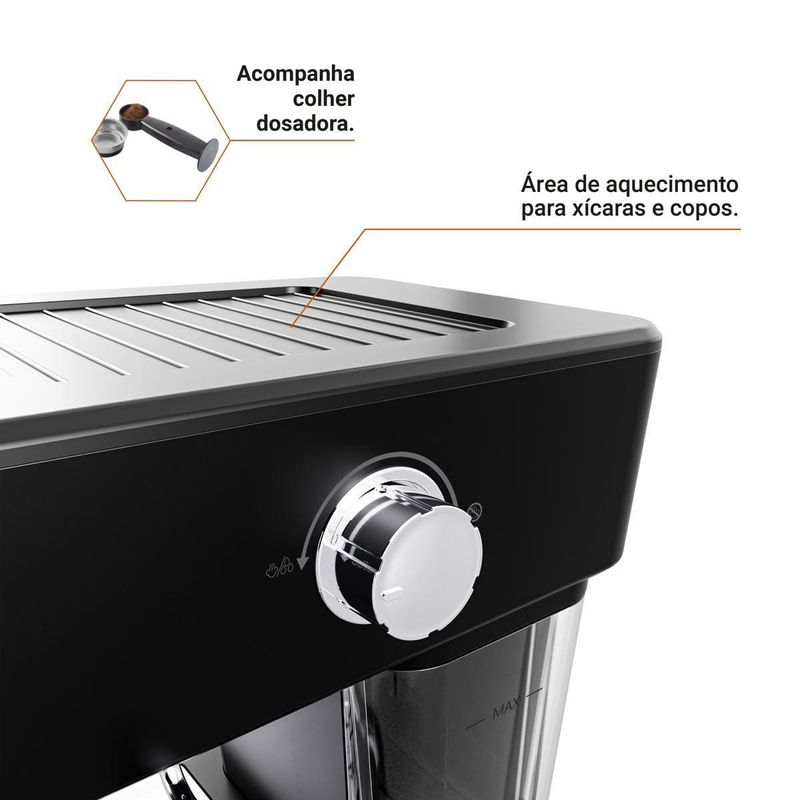 Prepare um café expresso de qualidade profissional no conforto da sua casa com a Cafeteira PCF04A da Philco. Ideal para quem busca sabor intenso e praticidade.Com pressão de 20 Bar, garante um café mais encorpado e aromático. O reservatório de 1,2L permite preparar várias xícaras sem reabastecer.Conta com potência de 950W para aquecimento rápido e saída de vapor com controle de intensidade, perfeita para cappuccinos e outras bebidas.Pressão de 20 Bar para café intensoReservatório de 1,2LPotência de 950WSaída de vapor com controleDesign elegante em preto e inoxQue tal combinar essa cafeteira com um super conjunto de xícaras? Aproveite agora mesmo!
