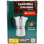 Seja bem-vindo(a) a Loja NIVALMIX,Uma excelente escolha para quem valoriza um bom café através de um método de preparo simples e eficaz para até 6 xícaras.Com design clássico e material em alumínio, é o produto ideal para o preparo de um café saboroso e robusto de forma rápida e com um charme tradicional.Especificações: • Marca: Unitermi • Referência: 6.3.430• Material: Alumínio, silicone, cobre, peças de plástico• Capacidade: 300ml• Dimensões: 19cm x 10,5cm x 16cm (AxCxL)• Peso: 335gr• Cor: Prata• Serve até 6 xícaras• Garantia do Fornecedor: 03 meses contra defeitos de fabricação• Validade: Indeterminada Itens Inclusos • 01 Cafeteira Italiana 300mlCompulsório Registro Inmetro: 003598/2024 OCP 0098As cores podem variar entre as imagens mostradas acima e o produto. Imagens meramente ilustrativas.
