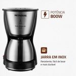 Cafeteira Mondial C37 Jarra Inox 30 Xícaras 800W Preta Preto 220VA Cafeteira Elétrica Dolce Arome C-37-JI-30X pode preparar até 30 xícaras de café com muita praticidade. Possui filtro permanente e porta-filtro removível que proporcionam mais sustentabilidade ao meio ambiente. Moderna, a jarra em inox é mais durável, fácil de lavar e pode ser levada à mesa. Conta com sistema corta-pingos e base com aquecimento para conservar a temperatura do café por mais tempo. Saiba mais sobre a C-37-JI-30X da Mondial:30 XÍCARAS DE CAFÉ: Perfeita para atender a família. DESIGN SOFISTICADO : Na cor preta e acabamento em aço inox, a cafeteira proporciona mais elegância à sua cozinha. FILTRO PERMANENTE E PORTA-FILTRO REMOVÍVEL: A cafeteira dispensa a utilização do filtro de papel. Além de economizar, você ainda torna o seu dia a dia mais sustentável. SISTEMA CORTA-PINGOS: A função permite retirar a jarra ainda durante o preparo do café, evitando respingos, sujeira e desperdício. JARRA EM INOX: Visual moderno e mais durável: a jarra em inox não quebra, é fácil de lavar e prática para levar à mesa. BASE COM AQUECIMENTO: Mantenha a jarra na cafeteira e seu café ficará quente por mais tempo. INDICADOR DO NÍVEL DE Água: Permite o preparo da quantidade desejada de xícaras de café. TAMPA BASCULANTE: Facilita o acréscimo de Água e pó de café, bem como sua limpeza. LIGA/DESLIGA LUMINOSO: Indica o funcionamento do produto. UM ANO DE GARANTIA MONDIAL: A Mondial é a escolha de milhões de consumidores. Mondial, a escolha inteligente! Atenção: 1. Conforme a Lei nº 11.291/06, informamos que o uso de equipamentos em potência superior a 85 decibéis pode prejudicar a audição. 2. Devido às normas da ABNT e às resoluções nº 13 de 2006, nº 2 de 2007 e nº 8 de 2009 do CONMETRO, os fabricantes estão mudando as tomadas para o novo padrão. Para utilizar este produto, será preciso adaptador ou a troca da tomada antiga. Não nos responsabilizamos por esta alteração.