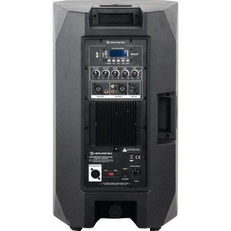 Caixa Acústica Ativa Pro12 HayonikA caixa acústica ativa Hayonik PRO12 conta com qualidade excepcional, design elegante, potência intensa e conectividade avançada. Projetada e desenvolvida em laboratórios especializados para ter a melhor eficiência sonora possível. Ela conta com ajustes de volume e com conexão microfone, line, XLR, P10 e RCA. Sem contar que você pode selecionar facilmente entre o modo auxiliar, bluetooth. Rádio, USB e SD music. O melhor de tudo é poder ter controle total na ponta dos dedos! Acompanhe e personalize sua experiência sonora com o aplicativo Hayonik Connect.Alimentação:127VAC/220VAC (Chave seletora)Cor:PretaAlto Falantes:12Potência:720W PMPO 360W RMSSaídas:XLR, SPEAKONDimensões:353 x 389 x 357mmPeso:14,3KgInformação adicional Entradas: RCA, P10, XLR Potência: 360W RMS Drive: Titanium 1,35” Equalização: Volume, grave e Agudo Modos: USB, SD, Bluetooth (5.0), FM, Aux, Conexão TWS (Conexão entre caixas) Classe do amplificador: CLASS-AB Resposta de frequência: 1,2 - 20Khz Conteúdo da embalagem 01 Caixa de som ativa acústica injetada series PRO 01 Controle remoto 01 Cabo AC padrão brasileiro 01 Manual do usuário. Número de homologação da Anatel: 05407-18-11619 Garantia: 12 meses Procedimento de garantia e devoluções: