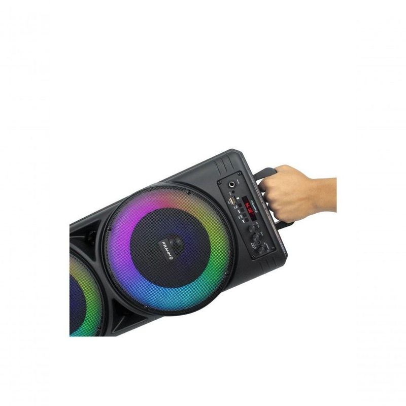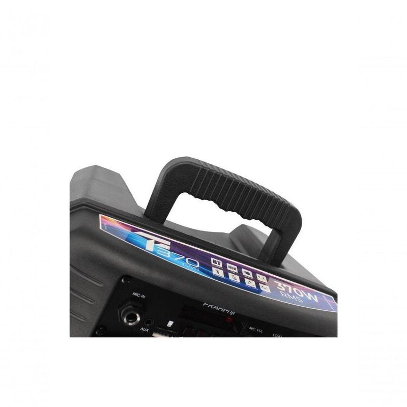 Caixa Amplificada Multiuso Frahm Tf 370 TwsCAIXA AMPLIFICADA MULTIUSO TF 370 TWSApresentamos a TF 370 TWS: uma caixa compacta e potente com dois alto-falantes de 8?? e 370W RMS. Ideal para uso diário e festas, ela se destaca em qualquer ambiente. INDICAÇÃO DE USOFestas com amigos, parque, camping, praia, reuniões corporativas, para curtir com a família e muito mais. BENEFÍCIOS- Função TWS (Frahm Wireless Connect) que permite que duas caixas do mesmo modelo se conectem através da tecnologia Bluetooth, aumentando sua experiência sonora.- Bateria interna com autonomia de 8h em volume médio, dão portabilidade para sua playlist.- Controle de volume para microfone que permite ajustar o nível de áudio do microfone conectado à caixa de som, proporcionando controle preciso sobre a intensidade do som. Led RainbowOs LEDs embutidos adicionam estilo e atmosfera às caixas de som, criando uma experiência visual dinâmica e cativante. Modo ECHOO modo ECHO oferece a função de eco ajustável, aprimorando a qualidade do som do microfone ao adicionar um efeito de eco sutil ou pronunciado, proporcionando uma experiência de áudio mais envolvente. TransporteA alça proporciona facilidade de transporte, permitindo que a caixa de som seja facilmente movida de um lugar para outro, oferecendo praticidade e agilidade em qualquer ambiente. *Imagens meramente ilustrativas. Potência370W RMSAlto-falante2×8?Driver1?Canal 1Bluetooth, USB, Micro SD, Auxiliar (P2) estéreoCanal 21x (P10) mono ? microfone, violãoBateriaBateria interna lítio 2400mAhAlimentaçãoDC 5V/2AAutonomia8h (volume médio)Dimensões (AxLxP)585x245x200mmPeso3,3 Kg Conteúdo da Embalagem01 Caixa amplificada multiuso TF 370 TWS01 USB-A para carregamento01 Manual de instruçõesCAIXA AMPLIFICADA MULTIUSO TF 370 TWSApresentamos a TF 370 TWS: uma caixa compacta e potente com dois alto-falantes de 8?? e 370W RMS. Ideal para uso diário e festas, ela se destaca em qualquer ambiente. INDICAÇÃO DE USOFestas com amigos, parque, camping, praia, reuniões corporativas, para curtir com a família e muito mais. BENEFÍCIOS- Função TWS (Frahm Wireless Connect) que permite que duas caixas do mesmo modelo se conectem através da tecnologia Bluetooth, aumentando sua experiência sonora.- Bateria interna com autonomia de 8h em volume médio, dão portabilidade para sua playlist.- Controle de volume para microfone que permite ajustar o nível de áudio do microfone conectado à caixa de som, proporcionando controle preciso sobre a intensidade do som. Led RainbowOs LEDs embutidos adicionam estilo e atmosfera às caixas de som, criando uma experiência visual dinâmica e cativante. Modo ECHOO modo ECHO oferece a função de eco ajustável, aprimorando a qualidade do som do microfone ao adicionar um efeito de eco sutil ou pronunciado, proporcionando uma experiência de áudio mais envolvente. TransporteA alça proporciona facilidade de transporte, permitindo que a caixa de som seja facilmente movida de um lugar para outro, oferecendo praticidade e agilidade em qualquer ambiente. *Imagens meramente ilustrativas. Potência370W RMSAlto-falante2×8?Driver1?Canal 1Bluetooth, USB, Micro SD, Auxiliar (P2) estéreoCanal 21x (P10) mono ? microfone, violãoBateriaBateria interna lítio 2400mAhAlimentaçãoDC 5V/2AAutonomia8h (volume médio)Dimensões (AxLxP)585x245x200mmPeso3,3 Kg Conteúdo da Embalagem01 Caixa amplificada multiuso TF 370 TWS01 USB-A para carregamento01 Manual de instruções