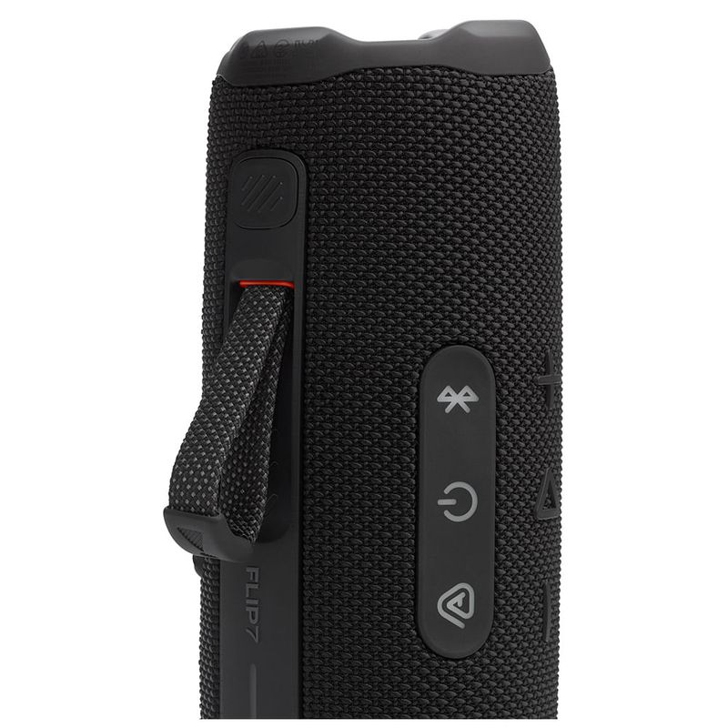 Som JBL Pro ousado com AI Sound BoostAté 16 horas de reproduçãoConexão com várias caixas de som pelo Auracast™À prova d’água e resistente a poeiraSistema PushLock com acessórios intercambiáveisReprodução de áudio sem perdasAplicativo JBL PortablePlástico e tecido reciclados, além de embalagens de papel com certificação FSC Características Compatibilidade: A Maioria dos Dispositivos Bluetooth Conexões: Bluetooth 5.4, USB e Auracast e JBL Partyboost (Via app) EAN: 1200130026836 Cor: Preto Especificações Técnicas Modelo: FLIP 7 Potência: 25 W RMS e 10 W RMS para TweeterGarantia: 12 meses Dimensões e Peso Dimensões do produto sem embalagem (AxLxP): 69,5x182x71,5 mm Dimensões do produto com embalagem (AxLxP): 92,5x211,5x109,5 mm Peso do produto sem embalagem: 0,565 kg Peso do produto com embalagem: 0,826 kg Itens Inclusos 01 JBL FLIP 7 01 Cabo USB Tipo C 01 Mosquetão 01 Guia rápido 01 Certificado de segurança01 Cartão de garantia Agente Validador Produto possui certificação de segurança compulsória, certificado pela 09899-24-07120, 10587-24-07120 e 10024-24-07120, organismo acreditado pela CGCRE do Inmetro.
