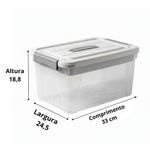 Caixa Cesto Organizador Multiuso Com Tampa 15 LitrosMantenha seus ambientes sempre bem organizados e visualmente agradáveis, uma solução prática, funcional e versátil para o armazenamento de diversos tipos de objetos. Ideal para guardar roupas, brinquedos, calçados, documentos, materiais escolares, acessórios de escritório, ferramentas leves ou qualquer outro item que precise de um espaço seguro e acessível, ela é perfeita para otimizar o espaço em casa, no trabalho ou até mesmo em ambientes comerciais. Produzida em plástico resistente e de alta durabilidade, esta caixa conta com uma tampa branca equipada com uma alça embutida que facilita o manuseio, além de travas laterais firmes que garantem o fechamento adequado, impedindo que a tampa se solte durante o transporte. Seu corpo transparente permite a visualização rápida e fácil do conteúdo interno sem a necessidade de abrir, tornando o dia a dia muito mais prático. Com design empilhável, ela economiza espaço e contribui para uma organização inteligente e eficienteEspecificações:Dimensões: 18,8cm altura x 24,5cm largura x 33cm comprimentoComposição: PlásticoCapacidade: 15 LitrosCor: Transparente com Tampa BrancaEspecificações:01 Cesto Multiuso com Tampa 15 Litros - Branca